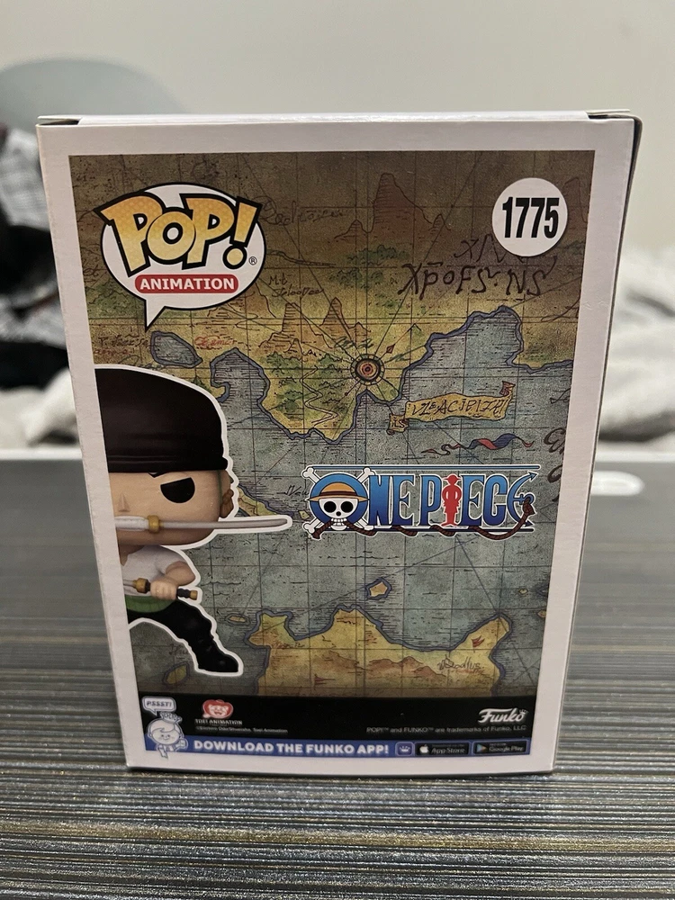 This Funko Pop! Vinyl figure features Roronoa Zoro from the popular anime and manga series One Piece. The figure is part of the S9 series and comes in box number 1775. It is a highly sought after collectible item for fans of the franchise, especially those who appreciate the character's charm and details. The figure is made of vinyl material and stands at a height of approximately 3.75 inches. It is part of the Pop! Vinyl product line and features a chase variant of the character. This item is perfect for collectors or fans of the series who want to add a unique and rare piece to their collection.