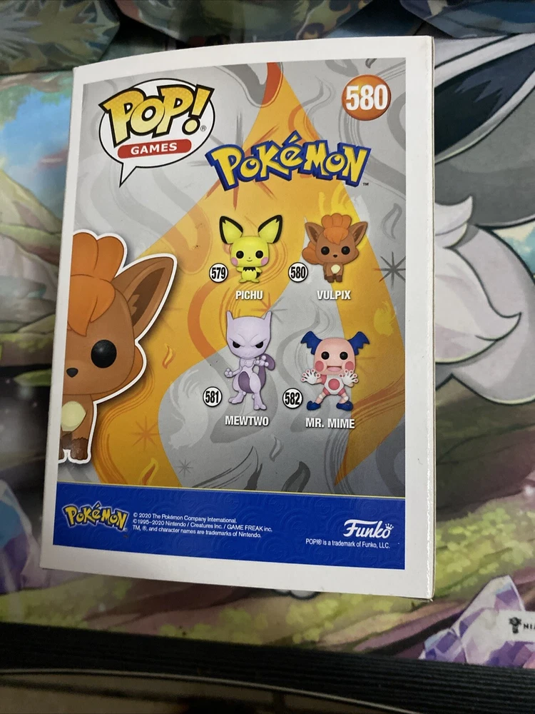 This Funko Pop! Vinyl figure features the beloved Pokémon character, Vulpix, with an exclusive flocked design. This vaulted and highly sought-after item is from the 2020 SDCC series and was originally available only at GameStop. The figure is made of high-quality vinyl and is a must-have addition to any Pokémon or Pop! Vinyl collection. The box number for this item is 580 and it falls under the Comics collection. The features of this item include its exclusivity, flocked design, and its association with the popular franchise, Pokémon.