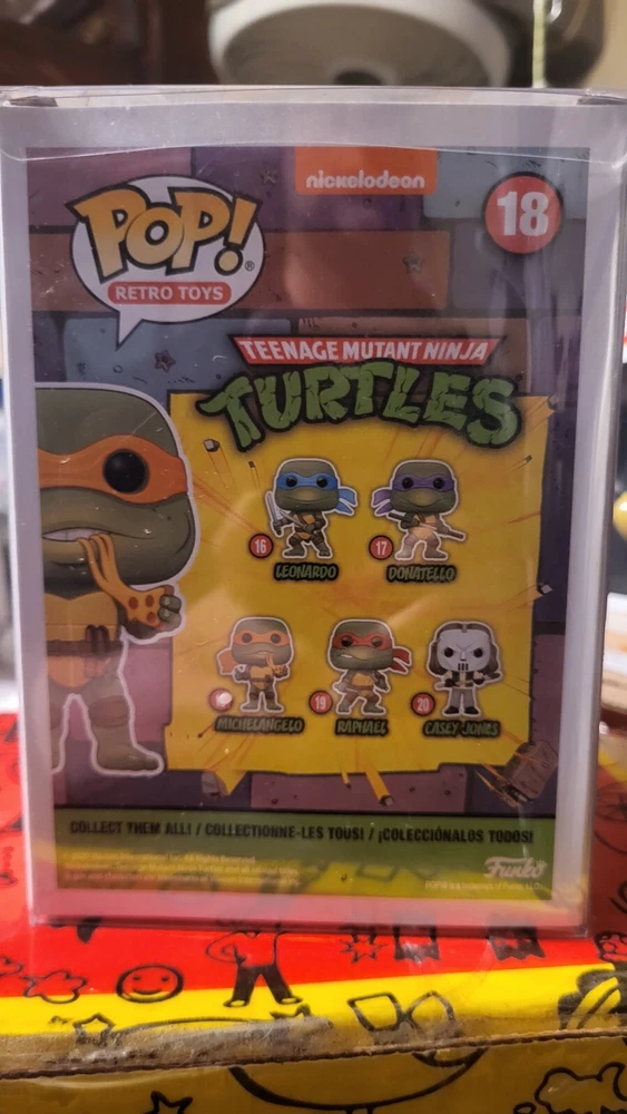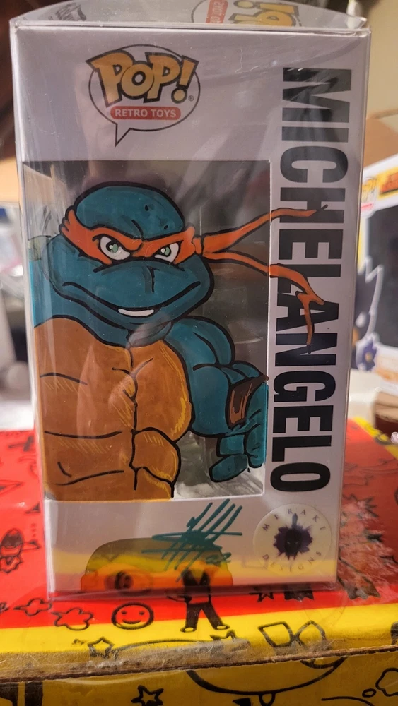 Custom art work michelengoThis Funko Pop! Vinyl figure features the beloved character Michelangelo from the Teenage Mutant Ninja Turtles franchise. The figure is part of the Retro Toys S2 series and the box itself was designed by Meraki Designs. It is made of high-quality vinyl material. It is a great addition to any collection and is perfect for fans of the franchise. The Funko Pop! Vinyl figure is a must-have for any collector and is sure to please any fan of the Teenage Mutant Ninja Turtles.