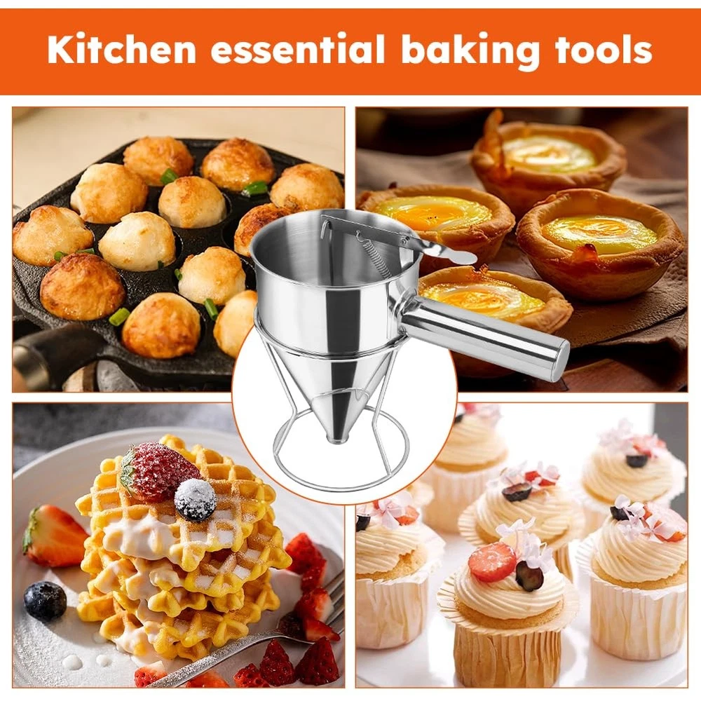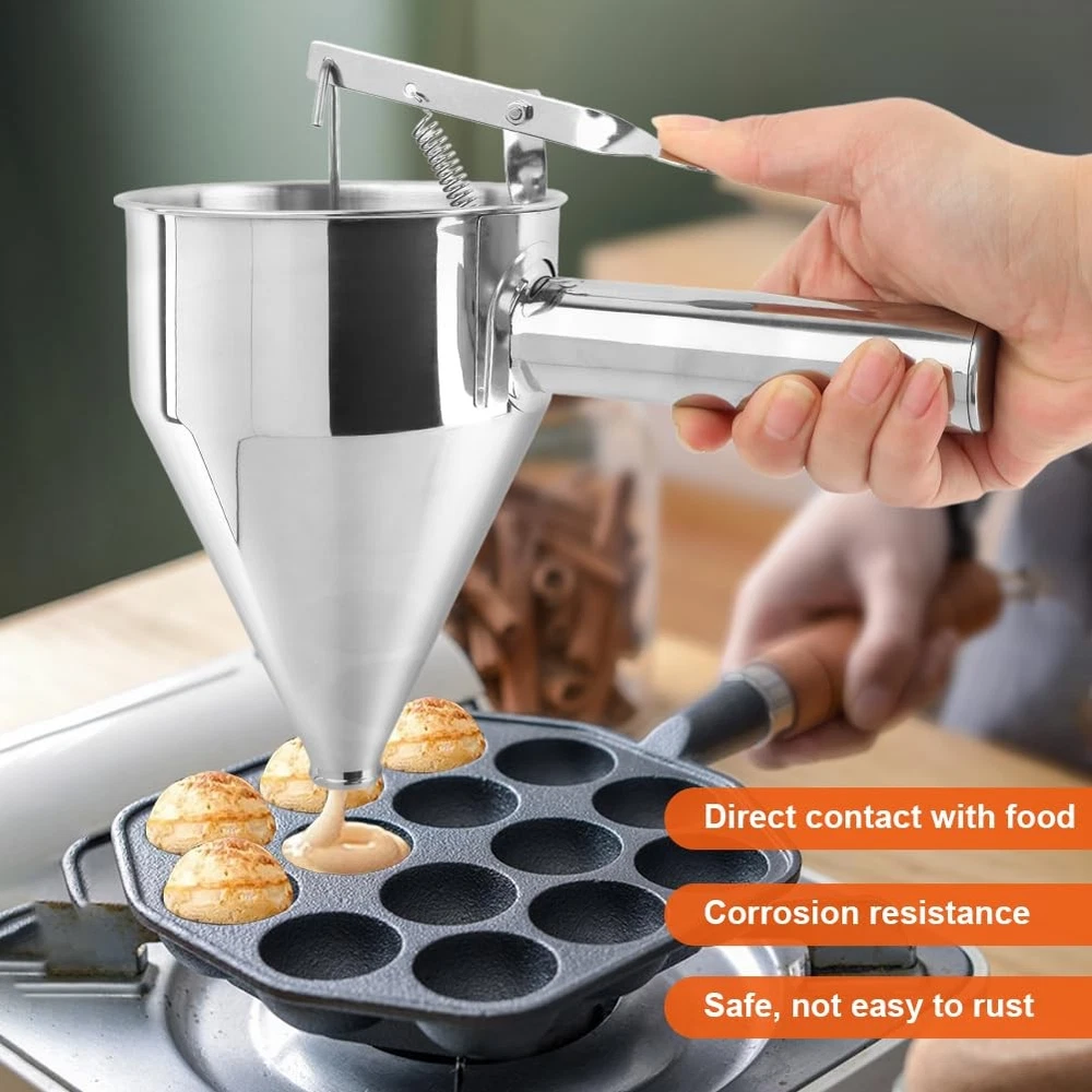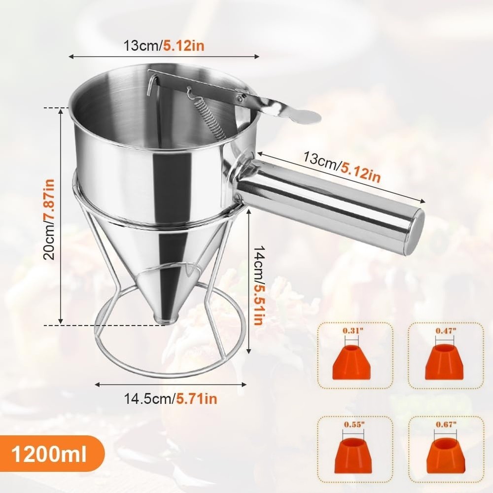 Store Categories Store Categories Other Funnel Dispenser Stainless Steel 1200ML Cone-shaped Batter Pancake Baking Tools Product Description Desc ription : By using the kitchen funnel, you can prevent liquid splashing while get a comfortable grip, owing to its ergonomic handle and wide mouth design. Featuring smooth, heat-resistant, non-stick, rust-free and large-capacity, it is easy for you to clean the stainless steel kitchen funnel. Made of stainless steel, it is lightweight and anti-deformed. The kitchen funnel with a storage rack is available in 4 styles. It is a perfect baking tool for kitchen, bakery, restaurant, café, etc. Features: High Quality: The liquid funnel is made of high-quality stainless steel, which is why it is very environmentally friendly and anti-rust. The pancake dispenser for batter provides optimum control in the flow of liquids without wasting them. Easy to Operation: This hopper device has pistons and springs for easy use. When you gently press the handle, the mud will flow out of the funnel. When you release your finger, the mud will stop flowing out. Stable Structure: This professional quality stainless steel piston funnel is supplied with a stand for stable operation. Makes portioning into moulds quick and easy. With minimal mess the funnel keeps work areas clean. It is also dishwasher safe for quick and easy cleaning. Detachable Funnel: The detachable handle design, you can remove the handle when you are not using it for easy storage and space saving. For accurate dispensing of batters, sauces, coulis, gravies and more. Ideal for fillings, biscuits and fondant. Suitable for modern home kitchens, cake shops, bakeries, juice shops and so on. Multifunctional Funnel: The batter dispenser is an essential baking tool for the kitchen. It can easily and accurately dispense most batter, seasonings and icing, even pizza sauce. It is suitable for Takoyaki balls, pancakes, crepes, muffins, cupcakes, waffles, chocolate balls, etc. Specification: Item Name: Cone-shaped Stainless Steel Funnel Dispenser Material: Stainless Steel Features: Detachable, Portable, Rust-free Available Capacity; 600ml & 1200ml Color: Silver Size 1200ml: About 22x13.2 cm Use For: Takoyaki Balls, Pancakes, Crepes, Muffins, Cupcakes, Waffles, Chocolate Balls, etc. Package Includes: 1 x Kitchen Funnel 1 x Support 4 x Spout accessories Note : Due to the difference between different monitors, the pictures may not reflect the actual color of the item. Compare the detail sizes with yours, please allow 1-3 cm error, due to manual measurement. Please leaving a message before you give the bad feedback, if the products have some problems Payment Policy Shipping Policy Returns Policy Contact us About us Payment Policy We accept payment via PayPal. Use PayPal at checkout to pay with credit or debit. Immediate payment is required. Shipping will be arranged within 2 business day once payment is cleared. Shipping Policy We will ship out the item from USA within 2 working days after receiving the payment. We offer USPS Ground Advantage with Free Tracking Number Service to ensure your package arrive fast and safely. Usually the delivery takes 3-5 bus in ess days(Sat. & Sun. & Public holiday excluded.). Please wait patient,thanks If you don't receive the items after 10 days , please feel free to Contact us Please Make sure your shipping address is correct and includes your Apt#, Box# or Unit# if any. We are off in weekend, The orders from weekend will ship in next Monday. If you can not accept "Weekend off", kindly please cancel the order or message us to cancel it. Returns Policy We offer 30 daysrefund or exchange policy on defective or wrong items since you receive the item. If you are not satisfied with the item. please contact us via ebay message for an item exchange or refund. Buyer is responsible for shipping cost incurred shipping item back. For any return, please feel free to contact firstly, Do not leave neutral or negative feedback without asking help, Do not open return request, please contact us for FREE return shipping label for the defective or wrong items. Contact us Any queries or issues incurred, please feel free to contact us via eBay message, we are always here ready for help. All emails will be responded to within 24 hours. If you do not receive a response from us, please resend your email kindly and we will get back to you as soon as possible. Good communication can solve all problems and we will do our best to solve your problems. DO NOT open return request or leave negative feedback without asking for help. Highly appreciated your POSITIVE feedback & 5 star DSR. Enjoy shopping, thank you so much. About us Unless specified otherwise, all our products are IN STOCK and are shipped from Local warehouse - Not Overseas! We provide a 30 day Satisfaction Guarantee or your money back (provided items are in the same new and resaleable condition.) We have a PayPal Verified Business Account, please buy with Confidence! Every item will be tesrted before send.We know our products well and if we don't have the answers we will do our best to find them for you! Our friendly team look forward to serving you! Your satisfaction is our No.1 Priority We will do our best to satisfacy you. Copyright © 2023 Dianxiaomi