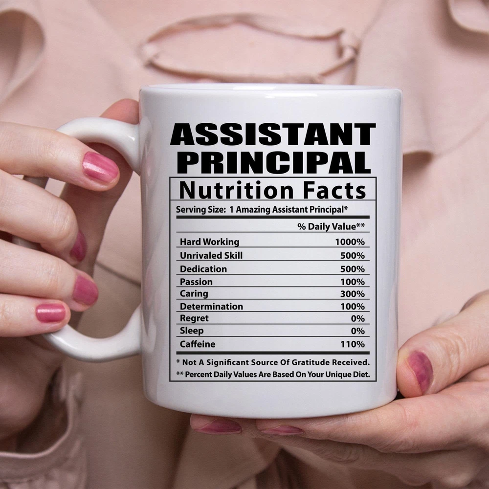 Funny Assistant Principal Nutritional Facts White Coffee Mug Product Details.. This high quality 11oz. ceramic white mug has a premium hard coat that provides crisp and vibrant color reproduction sure to last for years. Perfect for all hot & cold beverages. The highest quality printing possible is used. It will never fade no matter how many times you wash it. Material: 100% Ceramic. Print both sides. Dishwasher and Microwave Safe. High Gloss + Premium White Finish. Printed in the U.S.A. Personalized & Custom. We support personalized and custom mug to add custom, when placing an order, you can add notes to the "order note" in shipping address section. Also you can contact us directly via message. Shipping Info. Ready to ship in 1 to 2 business days, All products are made-to-order and proudly printed in the United States. Shipped by USPS and DHL, You will receive your order in 5-7 days. Replace & Refund. All products are defective during shipping broken, chipped will be replaced free of charge. You are not satisfied with the product, we will refund 100% money to you. If any other issues arise, please do not hesitate to message, we would be more than happy to assist you.