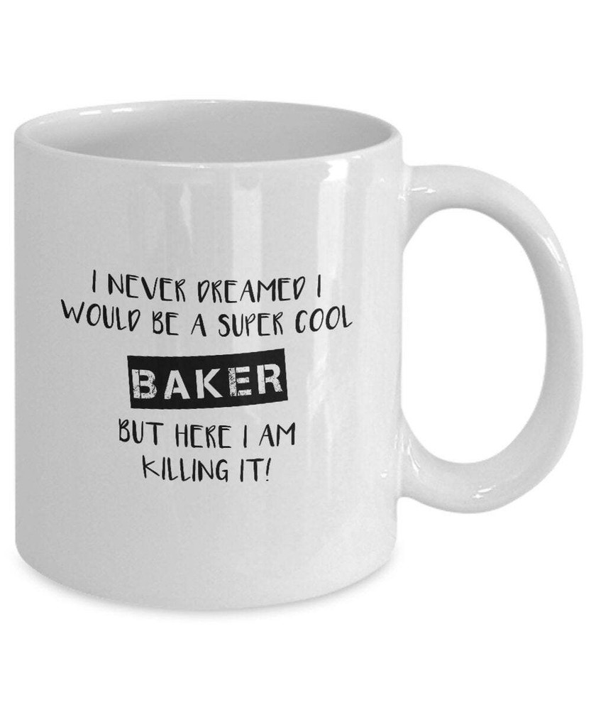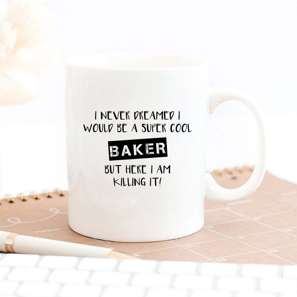 Coffee Mug Baker Mug Bakers Mug Baker Gift Baker Gift For Baker Funny Mug Baking Product Details.. This high quality 11oz. ceramic white mug has a premium hard coat that provides crisp and vibrant color reproduction sure to last for years. Perfect for all hot & cold beverages. The highest quality printing possible is used. It will never fade no matter how many times you wash it. Material: 100% Ceramic. Print both sides. Dishwasher and Microwave Safe. High Gloss + Premium White Finish. Printed in the U.S.A. Personalized & Custom. We support personalized and custom mug to add custom, when placing an order, you can add notes to the "order note" in shipping address section. Also you can contact us directly via message. Shipping Info. Ready to ship in 1 to 2 business days, All products are made-to-order and proudly printed in the United States. Shipped by USPS and DHL, You will receive your order in 5-7 days. Replace & Refund. All products are defective during shipping broken, chipped will be replaced free of charge. You are not satisfied with the product, we will refund 100% money to you. If any other issues arise, please do not hesitate to message, we would be more than happy to assist you.