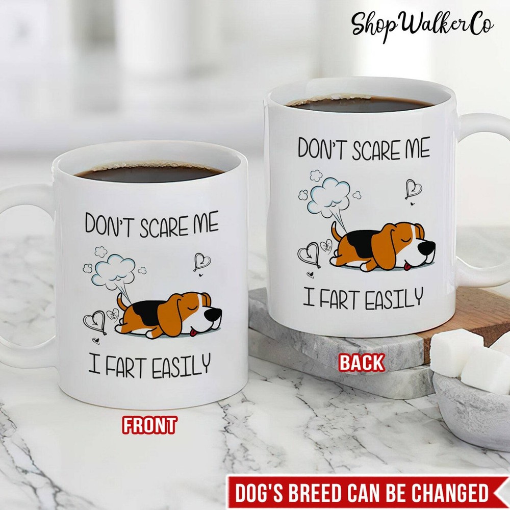 I Fart Easily Beagle Mug Funny Beagle Mug Funny Dog Mug Beagle Mom Mug Gift For Product Details.. This high quality 11oz. ceramic white mug has a premium hard coat that provides crisp and vibrant color reproduction sure to last for years. Perfect for all hot & cold beverages. The highest quality printing possible is used. It will never fade no matter how many times you wash it. Material: 100% Ceramic. Print both sides. Dishwasher and Microwave Safe. High Gloss + Premium White Finish. Printed in the U.S.A. Personalized & Custom. We support personalized and custom mug to add custom, when placing an order, you can add notes to the "order note" in shipping address section. Also you can contact us directly via message. Shipping Info. Ready to ship in 1 to 2 business days, All products are made-to-order and proudly printed in the United States. Shipped by USPS and DHL, You will receive your order in 5-7 days. Replace & Refund. All products are defective during shipping broken, chipped will be replaced free of charge. You are not satisfied with the product, we will refund 100% money to you. If any other issues arise, please do not hesitate to message, we would be more than happy to assist you.