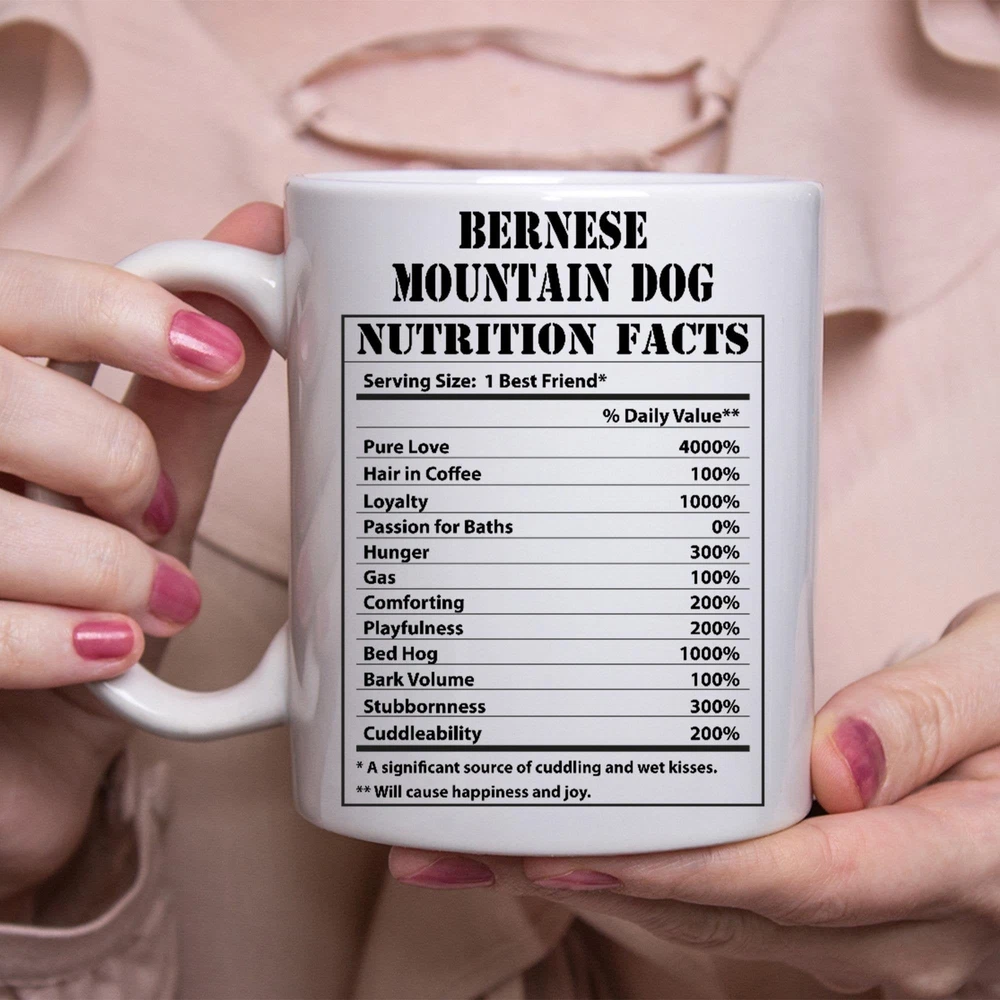 Funny Bernese Mountain Dog Gifts Nutritional Facts White Coffee Mug Product Details.. This high quality 11oz. ceramic white mug has a premium hard coat that provides crisp and vibrant color reproduction sure to last for years. Perfect for all hot & cold beverages. The highest quality printing possible is used. It will never fade no matter how many times you wash it. Material: 100% Ceramic. Print both sides. Dishwasher and Microwave Safe. High Gloss + Premium White Finish. Printed in the U.S.A. Personalized & Custom. We support personalized and custom mug to add custom, when placing an order, you can add notes to the "order note" in shipping address section. Also you can contact us directly via message. Shipping Info. Ready to ship in 1 to 2 business days, All products are made-to-order and proudly printed in the United States. Shipped by USPS and DHL, You will receive your order in 5-7 days. Replace & Refund. All products are defective during shipping broken, chipped will be replaced free of charge. You are not satisfied with the product, we will refund 100% money to you. If any other issues arise, please do not hesitate to message, we would be more than happy to assist you.