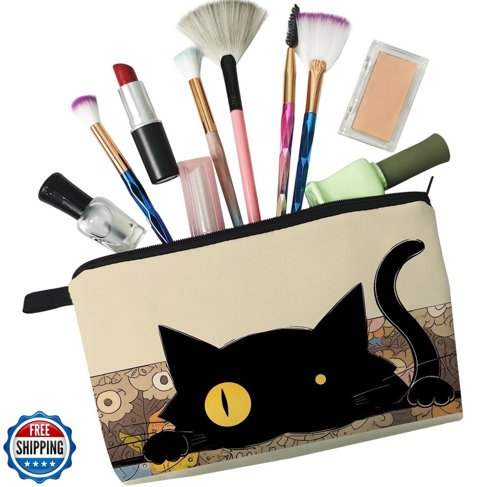 Livel lhood Funny Kitten Gift Black Cat Makeup Bag Cute Small Makeup Organizer Bag Travel Toiletry Zipper Pouch Funny Cat Cosmetic Bag Birthday Christmas Gift for Cat Lovers Women Features 1.Durable Material: The Funny Black Cat cosmetic bag is made from soft Polyester with a metal zipper. It's soft, smooth, hardy and durable, and has a high quality. It's easy to clean with a lightweight which means easy to carry. 2.Fashion Design: The Funny Black Cat cosmetic bag has a clear and vibrant design, double-sided printing. There are different kinds of cute, lovely, funny and beautiful patterns to choose. The makeup bag fits both the popular aesthetic and unique personalities. 3.Good Size:8.65 in* 2 in* 5.35 in. 25 grams weight. The cosmetic bag is easy to carry make-up tools like lipsticks, eye shadows, brushes, sunscreens, etc. The makeup bag is also able to carry stationery, medicines, coins, cards and other personal effects. 4.Fits: Makeup bags and gifts for women, animal lovers, friends, family members on Christmas, New Year, Mother's Day, Thanksgiving, Valentine's Day and other holidays as well as birthdays and anniversaries. Receiving a gift like this bag will make her happy. This is also a good way to express love and show her or their personalities. 5.Applicable Occasion: Ideal for travel, vacations, business trips, gyms, camping and other outdoor activities. These cosmetic bags can be used as makeup bags, coin purses, cellphone pouches, medicine storage bags and so on. Shipping Free & Fast Shipping: We offer free shipping to most of the USA with a normal delivery time of 3-7 days. However, due to the current situation, additional delivery time (up to 3 weeks) may be required for some items. Alternative Carriers: We may use alternative carriers (e.g., USPS, FedEx, UPS) to ensure your package arrives safely and on time. Due to the use of multiple carriers, we are unable to provide a tracking number automatically. Handling Time: Orders are processed and shipped within 1-2 business days of receiving cleared payment. Shipping Restrictions: Shipping to Alaska, Hawaii, Puerto Rico, Guam, and other US territories may incur shipping charges or delivery restrictions. Please contact us before ordering, or your order can be refunded/cancelled. State Restrictions: Certain items may not be shipped to California due to state regulations. Contact for Tracking Updates: If you require tracking updates or have any concerns about the delivery of your order, please feel free to contact us, and we will be happy to assist you. Return Policy 30-Day Hassle-Free Returns: If you are not completely satisfied with your purchase, you can return the item for free within 30 days of receiving it for a full refund or exchange. Easy Return Process: Contact us, and we will provide you with a prepaid return shipping label and detailed instructions. No Restocking Fee: There are no restocking fees for returns. However, the buyer is responsible for return shipping costs if the return is not due to a seller"s error. Refund Processing: Refunds will be processed within 1 business day of receiving the returned item in its original condition. Feedback Your feedback is extremely important to us. We strive to provide the best products and customer service possible. If you are satisfied with your purchase, please take a moment to leave us a positive review. If you have any concerns or issues with your order, please contact us before leaving negative feedback. We are committed to resolving any problems and ensuring your satisfaction. Contact Us If you have any questions or concerns, please feel free to reach out to our customer support team. You can contact us through the eBay messaging system. We are available Monday to Friday, 9:00 am to 5:00 pm EST, and we will do our best to respond to your inquiry within 24 hours. Thank you for supporting our small family business!