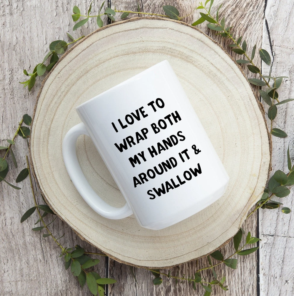 Coffee Mug I Love To Wrap Both My Hands Around It And Swallow Funny Mug Best Product Details.. This high quality 11oz. ceramic white mug has a premium hard coat that provides crisp and vibrant color reproduction sure to last for years. Perfect for all hot & cold beverages. The highest quality printing possible is used. It will never fade no matter how many times you wash it. Material: 100% Ceramic. Print both sides. Dishwasher and Microwave Safe. High Gloss + Premium White Finish. Printed in the U.S.A. Personalized & Custom. We support personalized and custom mug to add custom, when placing an order, you can add notes to the "order note" in shipping address section. Also you can contact us directly via message. Shipping Info. Ready to ship in 1 to 2 business days, All products are made-to-order and proudly printed in the United States. Shipped by USPS and DHL, You will receive your order in 5-7 days. Replace & Refund. All products are defective during shipping broken, chipped will be replaced free of charge. You are not satisfied with the product, we will refund 100% money to you. If any other issues arise, please do not hesitate to message, we would be more than happy to assist you.