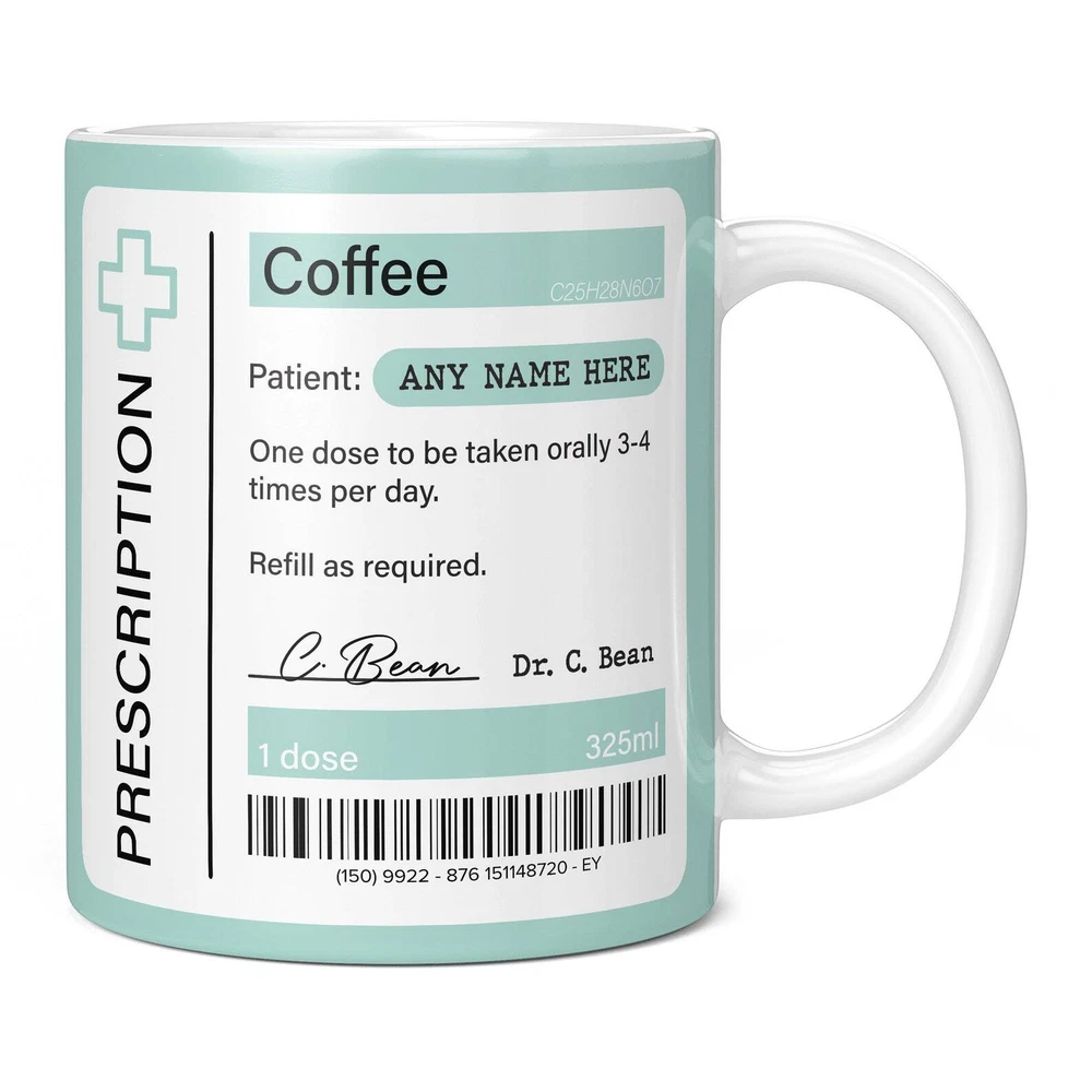 Funny Coffee Mug Prescription For Coffee Personalised Gift For Woman Gift Mug Product Details.. This high quality 11oz. ceramic white mug has a premium hard coat that provides crisp and vibrant color reproduction sure to last for years. Perfect for all hot & cold beverages. The highest quality printing possible is used. It will never fade no matter how many times you wash it. Material: 100% Ceramic. Print both sides. Dishwasher and Microwave Safe. High Gloss + Premium White Finish. Printed in the U.S.A. Personalized & Custom. We support personalized and custom mug to add custom, when placing an order, you can add notes to the "order note" in shipping address section. Also you can contact us directly via message. Shipping Info. Ready to ship in 1 to 2 business days, All products are made-to-order and proudly printed in the United States. Shipped by USPS and DHL, You will receive your order in 5-7 days. Replace & Refund. All products are defective during shipping broken, chipped will be replaced free of charge. You are not satisfied with the product, we will refund 100% money to you. If any other issues arise, please do not hesitate to message, we would be more than happy to assist you.