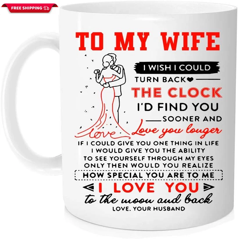 Funny Coffee Mug,To My Wife I Wish I Could Turn Back the Clock , I Love You Mug or Office Tea Cups for Wife Birthday, Valentine, Wedding Anniversary,Christmas,Mother'S Day, 11 Oz Novelty Mug This funny sayings coffee cup with a two-sided print.It features a large C handle for comfort.Classical white mug, solid color will easily mix and match with many designs and other colors. MUST HAVE BASIC, Novelty gift for your mom, dad, grandparents, friends, relatives, classmates, bestie, brother, sister or anyone who love drinking coffee, tea and hot or cold drinks.Affordable price and elegant at the same time.Welcome to our store wish you a nice shipping experience! Reusability Reusable Unit Count 1.0 Count Style Modern Number of Items 1 Capacity 11 ounces Occasion Christmas, Wedding, Anniversary Color White Pattern Letter Print Theme Funny Specific Uses For Product Cold Drinks, Hot Drinks Item Weight 12.6 ounces Shape Round Material Feature Ceramic Age Range (Description) Adult Recommended Uses For Product Home Item model number CHNAETA-02084 Included Components Handle Special Feature Microwave Safe Package Dimensions 4.76 x 4.13 x 3.62 inches Product Care Instructions Machine Wash, Hand Wash Only Size 11 ounce Shipping Fast shipping is very important for us. Our standard US shipping service is FREE. Your order will be shipped within 1-3 business days upon full payment received. Your order will be delivered within 1-3 business days after the handling time. We reserve the right to cancel any order for any reason at any time. We are not responsible for undeliverable addresses. We are not responsible for undeliverable addresses. Returns and payment We offer a 30-day return policy from the date of payment received. This return policy covers Incorrectly Shipped items, Broken or Damaged items, Items that do not match the Product description and Picture. Medicines, Pills, Creams, Gels, Food Supplements and products that cannot be reused after opening cannot be returned. For example; cat litter, powder detergent, salt, liquid products, etc. FeedBack Your feedback is very important to us, please leave us positive feedback once you receive your package and satisfied with our service. If you have any problems with your order, please contact us using the eBay communication system before leaving feedback. Please visit our eBay store to check out other items for sale! Thank you for shopping at our store.