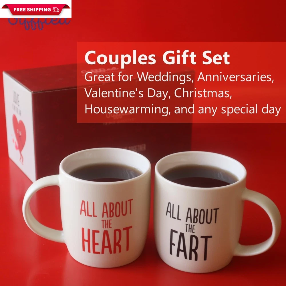 Funny Couples Gifts Heart and Fart Coffee Mugs for Anniversary Christmas Day, Engagement Gag Gift Idea, Girlfriend Boyfriend Parents His Hers, Mom and Dad, Mr Mrs, Ceramic, 380ML READY-TO-GIFT SET FOR COUPLES: Packed in a beautiful box, this gift of his and hers coffee mugs is made for couples and designed to show their love to the whole world. HIGH QUALITY: These mugs are made of ceramic and have printing on both sides. This set features a black cup for him and a beautiful pink mug for her. Fine foams wrap the cups and protect them in transit. GREAT CAPACITY: Each mug can hold 13 ounces (380 ml) and is dishwasher and microwave-safe. Some laughter and morning coffee would be the perfect way for couples to start their day. PERFECT GIFT IDEA FOR COUPLES: A great gift for couples to celebrate weddings, anniversaries, honeymoons, Christmas, engagements, bridal showers, bachelor/bachelorette parties, and housewarmings. A great addition to any wedding registry. BONDING MATCHING GIFT: Have a gag with this funny gift for your partner! A fun gift for your loved one on anniversaries, birthdays, or any particular day. A fun Valentine's Day gift for men and women and even for girlfriends and boyfriends. Triple Gifffted Funny Couples Gifts For Christmas, Heart/Fart, Wedding Anniversary, Engagement, Valentines Day Girlfriend Boyfriend Couple Gift, His & Hers, Bride & Groom, Him & Her, Ceramic, 380ML Item model number gifts for Couples Style Heart & Fart Number of Items 2 Pattern Letter Print Country of Origin China Theme Gift Unit Count 1.0 Count Product Dimensions 7.87"W x 4.33"H Package Type protective foam inserts Age Range (Description) Adult Finish Type Gift Specific Uses For Product Hot Drinks Included Components Cups, Gift box Reusability Reusable Occasion Anniversary Item Weight 1.2 Pounds Material Stoneware Capacity 13 ounces Item Weight 1.2 pounds Material Feature Ceramic Material Type Free BPA Free Special Feature Couples gifts, Wedding gifts, Gift box, Valentines Day gifts, Christmas gifts Color Black/Cream Shape Mugs Recommended Uses For Product Home Product Care Instructions Machine Wash, Hand Wash Only Size 13 Oz Shipping Fast shipping is very important for us. Our standard US shipping service is FREE. Your order will be shipped within 1-3 business days upon full payment received. Your order will be delivered within 1-3 business days after the handling time. We reserve the right to cancel any order for any reason at any time. We are not responsible for undeliverable addresses. We are not responsible for undeliverable addresses. Returns and payment We offer a 30-day return policy from the date of payment received. This return policy covers Incorrectly Shipped items, Broken or Damaged items, Items that do not match the Product description and Picture. Medicines, Pills, Creams, Gels, Food Supplements and products that cannot be reused after opening cannot be returned. For example; cat litter, powder detergent, salt, liquid products, etc. FeedBack Your feedback is very important to us, please leave us positive feedback once you receive your package and satisfied with our service. If you have any problems with your order, please contact us using the eBay communication system before leaving feedback. Please visit our eBay store to check out other items for sale! Thank you for shopping at our store.