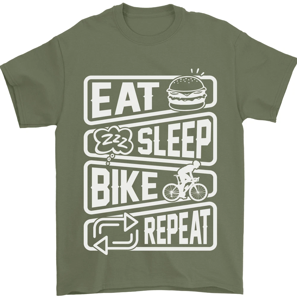 Funny Cycling Eat Sleep Bike Repeat Men’s 100% Cotton T-Shirt
