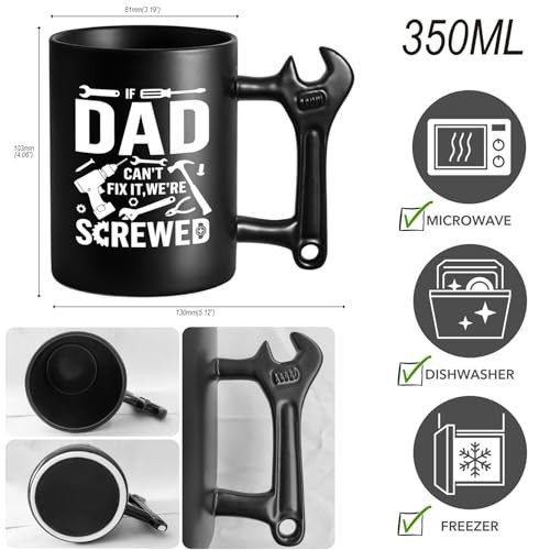 30 Days Return Policy Fast Delivery Trusted seller Novelty Fathers Day Dad Gifts from Daughter Son Wife kids, Funny Coffee Mug with Wrench Handle for Dad, Unique Father's Day Birthday Christmas Gifts Present for Men Husband Grandpa Gift Ideas Product Description Eye-Catching Wrench Handle Design - This dad mug stands out with its distinctive wrench spanner-shaped handle and sleek black finish. The humorous phrase, “If DAD can't fix it, we're screwe,” adds charm and humor, making it an instant conversation starter and a memorable addition to any home or office decor Fathers Day Gifts for Dad - Our funny dad mug is suitable for one of the most beautiful time of the year: Father's day. This dad cup will keep the happy, memorable, warm and joyful moments with your family and loved one. From sons and daughters to wives and brothers and friends make Father's Day extra special with this unique and practical gift! For dad's every milestone – This dad birthday gift is a sure hit for fun-loving and cool. It makes fantastic birthday gifts for dad, gifts for dad who wants nothing, new dad gifts, father birthday gift, cool stuff gifts for dad, dads birthday gifts ideas Cool fun useful dad gifts from daughter and son – Show your dad how funny he is with this funny mug. It’s a must-have for every dad. Get this for him on his 40th, 50th, 60th, dad gifts from daughter, son, best dad gifts, Christmas gifts for dad, dad christmas, small gadgets retirement gifts for men xmas presents. It is a good present choice for dad grandpa stepdad stepfather who is a repairman,mechanic, fitter, mender, fix stuff man, DIY obsessed Dads. Perfectly sized - This ceramic dad mug boasts a convenient size with a diameter of 3.15 inches, a height of 3.78 inches, and a generous 11-ounce capacity. unusual gift ideal for coffee, tea, or any beverage of choice, it fits comfortably in your hand and provides just the right volume to kickstart your day High-quality ceramic for safety & durability - Crafted from premium ceramic, this dad mug is both durable and safe for everyday use. Unlike metal or plastic options, it is free from potentially harmful chemicals and features a smooth, non-porous surface that makes cleaning effortless. Enjoy your beverage with peace of mind knowing this mug prioritizes your health Shipping Returns Payment Shipping Shipping is FREE to all addresses other than APO/PO boxes in the lower 48 states. All our stock ships from US-based warehouses. Shipped via USPS or UPS (depending on location and package weight) Unless stated otherwise, all orders will ship within 24-72 hours of your payment being processed. Check our feedback to see the great reviews of FAST shipping we offer. Returns As our valued customer, we will do our best to make sure the product you receive arrives to you on time and as expected. If you are not satisfied with your purchase, please contact us within 30 days of receiving your order to process a return. Payment We currently accept payment via eBay managed payments only. Once payment is cleared, we will dispatch your shipment within 1-3 business days. Please refer to the "Shipping" tab for more information regarding shipping speed to your destination.