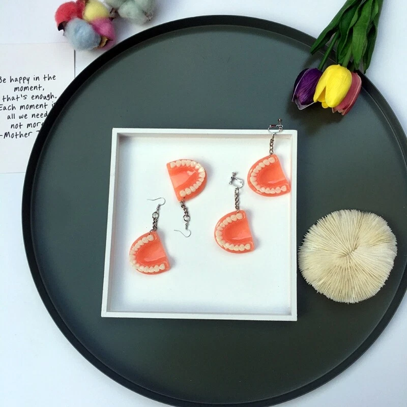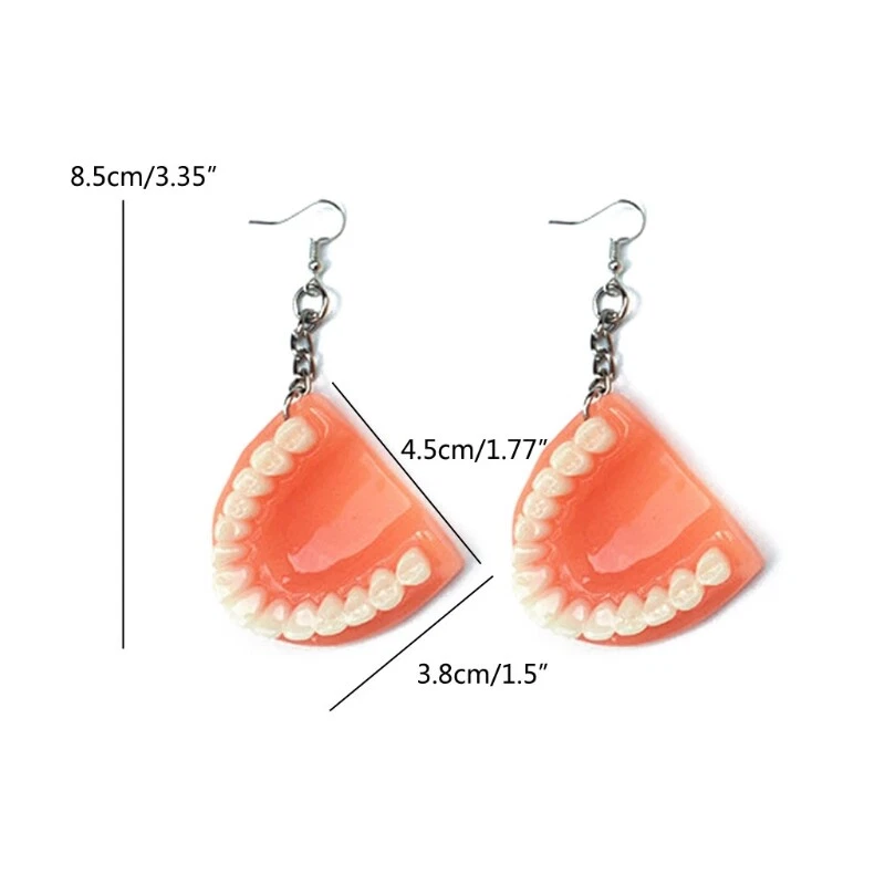 Funny Dental Teeth Earrings Funny 3D Tooth Model Hook Earrings Hygienist Dentist False Teeth Drop Earrings Jewerly Gift Feature: Dental Teeth Dangle Earrings is made of resin, it is easy to maintain and for ideal for long-lasting jewelry designs. This pink 3D tooth model earring gift is very suitable for who go to school in medical-school. It is fun but not rude Our dentist earrings are perfect for mothers, daughters, and anyone else who enjoys fun, wearable products! These unique earrings are different from other common gifts. They add fun to any situation! Give the gift of fun. Item Type :Earrings Designs:Dental Teeth Gender:Unisex Material: Resin & Alloy Color:Silver,Black Type: Optional A Piercing Hook Earrings B Non Piercing Clip-on Earrings Size: More detailed,please see photo. Quantity Pair. Note: Size for manual measurement, there may be a 0 to 3mm error, belongs to the normal phenomenon. And due to the difference between different monitors, the picture may not reflect the actual color of the item. Thank you! Package includes: Pair x False Teeth Earrings.