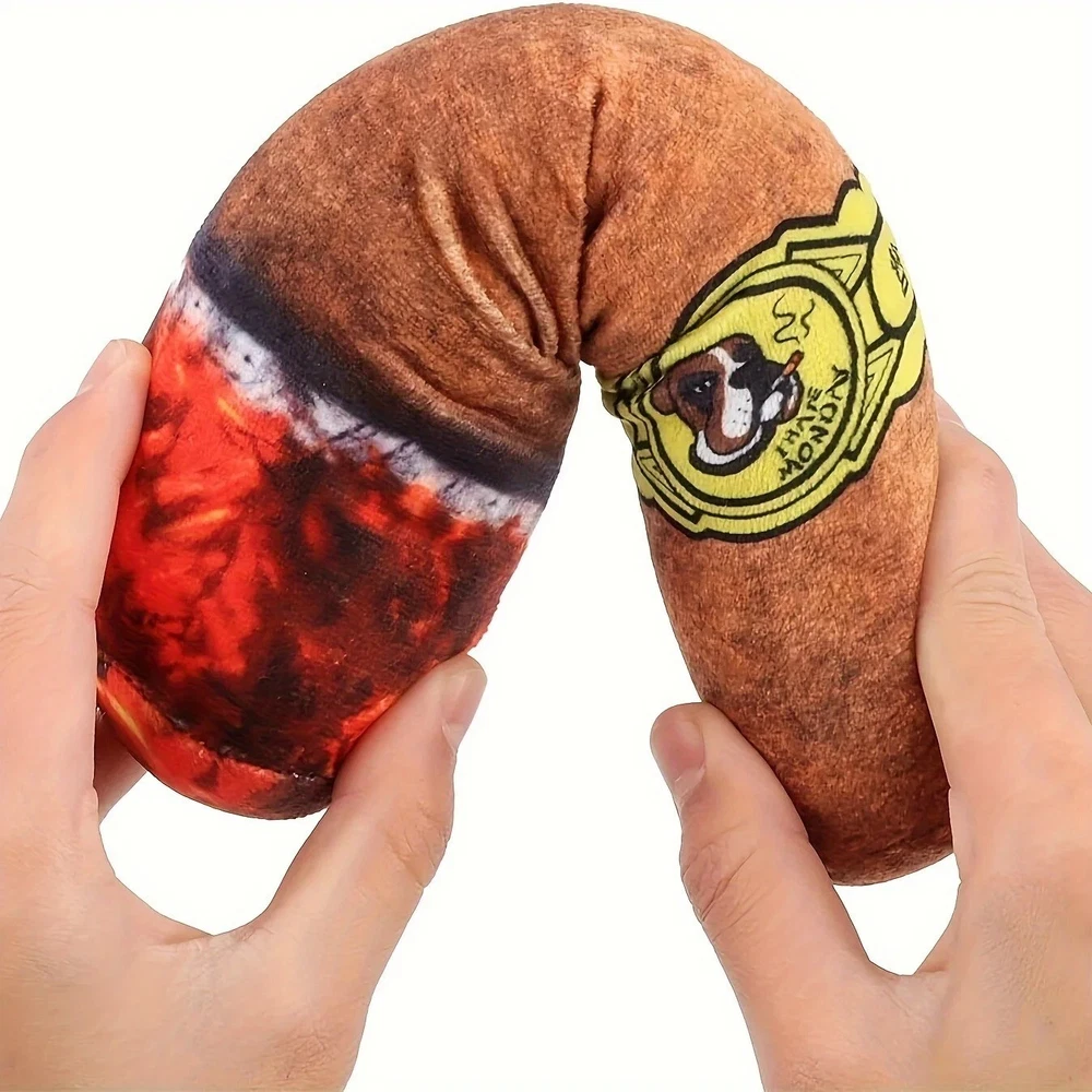 Funny Design Grinding Teeth Squeaky Cigar Plush Toy For Small Medium Dog Description Funny Design Grinding Teeth Squeaky Cigar Plush Toy For Small Medium Dog. This interactive toy is designed as a grinding teeth squeaky cigar plush toy for small to medium-sized dogs. The funny design adds an element of entertainment for your pet, while the plush material makes it soft and enjoyable to play with. The squeaky feature adds an extra level of engagement for your dog, keeping them entertained and active during playtime. Perfect for dogs who enjoy interactive toys that provide both mental and physical stimulation. Product Details • For : Small Medium Dog • Material : Fleece • Type : Cigar Plush Toy Please message me if you have any questions.