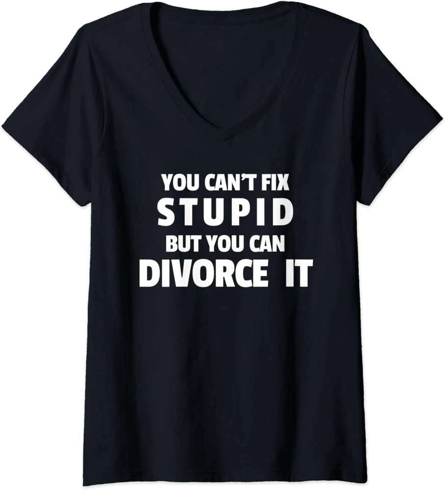 Welcome to Our eBay Shop Fast Shipping Hasslefree Returns Secure Payment Excellent Service Funny Divorce Party You Can't Fix A Stupid But... Product Description All of our t-shirts are brand new and made to order. They are printed in our New York facilities with love and passion. We use various printing methods to ensure you the high quality, long lasting garments you or your loved ones deserve. We carry sizes from Small to 2X-Large in Ladies' Vneck t-shirts (depending on the design). You can refer to "SPECS & SIZING" to get accurate information regarding the sizes of the garments we use. This design is also available and printed on different types of garments in our store.If you would like this graphic printed on a different type of garment than a short sleeve women's v-neck t shirt, please make sure to check our store ! If you have any questions regarding this item or any other item we have for sale, do not hesitate to contact us. We answer all messages within 1 business day. SPECS & SIZING SHIRT CARE TIPS Wash inside out with cold water with similar colors using a gentle cycle. Tumble dry low or hang-dry Avoid using bleach and do not dry clean. PAYMENT We accept payment by any of the following methods: PayPal Please pay as soon as possible after winning an auction, as that will allow us to post your item to you sooner! SHIPPING Your order will be dispatched within 2 business days of receiving payment (Monday-Friday) with a tracking number. In the very unlikely event that your item is lost or damaged during post, then WE are responsible and will issue either a full refund or replacement. RETURNS If you are not 100% satisfied with your purchase, you can return the product and get a full refund or exchange the product for another one, be it similar or not. You can return a product for up to 14 days from the date you purchased it. Any product you return must be in the same condition you received it and in the original packaging. Please keep the receipt. Feedback * Your great positive feedback will be greatly welcomed! * If you have any problem when you receive the item, please contact us first, we'll do our best to resolve the problem!:) Copyright © 2022 | All Rights Reserved