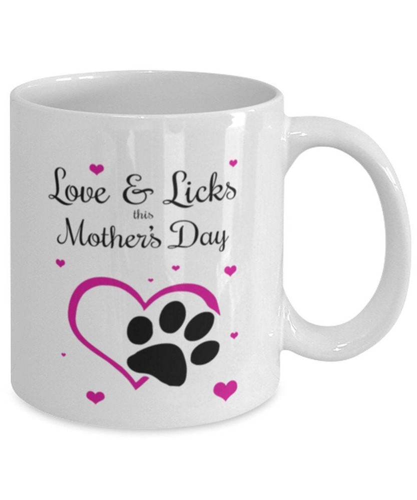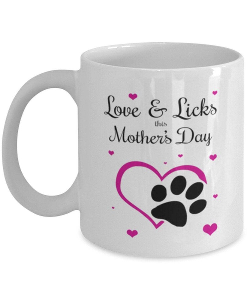 Dog Mom Funny Coffee Mug Love And Licks On Mother's Day Dog Mother's Day Gift Product Details.. This high quality 11oz. ceramic white mug has a premium hard coat that provides crisp and vibrant color reproduction sure to last for years. Perfect for all hot & cold beverages. The highest quality printing possible is used. It will never fade no matter how many times you wash it. Material: 100% Ceramic. Print both sides. Dishwasher and Microwave Safe. High Gloss + Premium White Finish. Printed in the U.S.A. Personalized & Custom. We support personalized and custom mug to add custom, when placing an order, you can add notes to the "order note" in shipping address section. Also you can contact us directly via message. Shipping Info. Ready to ship in 1 to 2 business days, All products are made-to-order and proudly printed in the United States. Shipped by USPS and DHL, You will receive your order in 5-7 days. Replace & Refund. All products are defective during shipping broken, chipped will be replaced free of charge. You are not satisfied with the product, we will refund 100% money to you. If any other issues arise, please do not hesitate to message, we would be more than happy to assist you.
