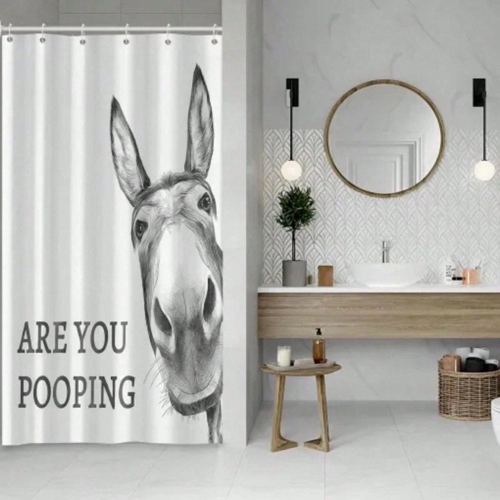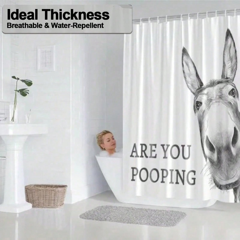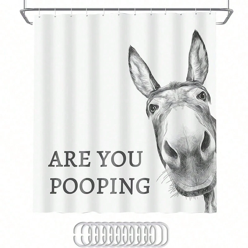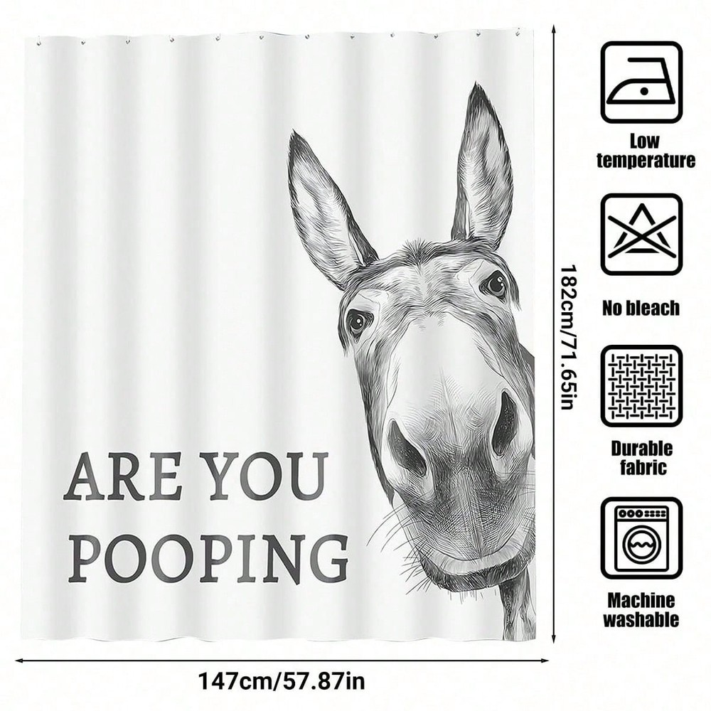 Funny Donkey Shower Curtain - 'are You Pooping?' Design, White Polyester, Hooks Included, Humorous Bathroom Decor On Mar 27, 2026 at 09:51:57 PDT, seller added the following information:
