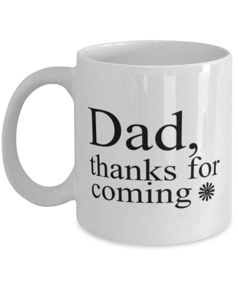 From Daughter Son Funny Coffee Mug Thanks For Coming Fathers Day Gift Dad Mug Product Details.. This high quality 11oz. ceramic white mug has a premium hard coat that provides crisp and vibrant color reproduction sure to last for years. Perfect for all hot & cold beverages. The highest quality printing possible is used. It will never fade no matter how many times you wash it. Material: 100% Ceramic. Print both sides. Dishwasher and Microwave Safe. High Gloss + Premium White Finish. Printed in the U.S.A. Personalized & Custom. We support personalized and custom mug to add custom, when placing an order, you can add notes to the "order note" in shipping address section. Also you can contact us directly via message. Shipping Info. Ready to ship in 1 to 2 business days, All products are made-to-order and proudly printed in the United States. Shipped by USPS and DHL, You will receive your order in 5-7 days. Replace & Refund. All products are defective during shipping broken, chipped will be replaced free of charge. You are not satisfied with the product, we will refund 100% money to you. If any other issues arise, please do not hesitate to message, we would be more than happy to assist you.