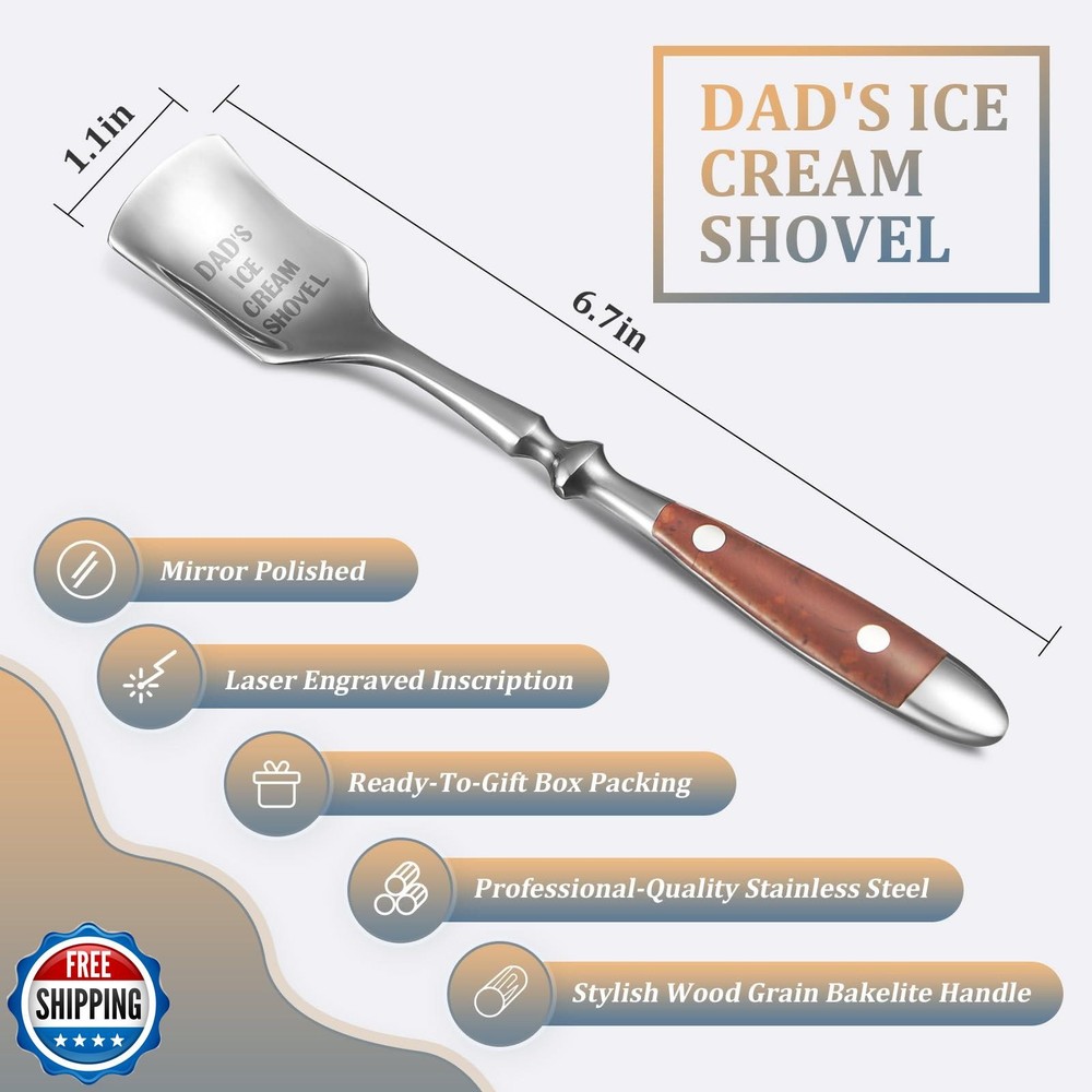 Funny Fathers Day Dad Gifts,Dad’s Ice Cream Shovel,Cute Ice Cream Gift,Birthday Gifts for Dad Who Wants Nothing,Father's Day Papa Presents from DaughterandSon,Stainless Spoon with Bakelite Handle Features Funny Dad's Ice Cream Shovel:This cute and unique ice cream shovel is a great gift for dad on every memorable day like his birthday, Father's Day, Christmas, and Thanksgiving!We believe that the dads who loves ice cream receive this unique shovel will definitely use it every day with joy. The shovel is presented in a white box, ready for gift-giving. High-Quality&Super Durable:Our professional-quality ice cream spoon is crafted of heavy-gauge 18/8 stainless steel and ergonomically shaped for superior balance and control you can really feel.Durable enough for the kitchen and attractive enough for the table. Stylish Wood Grain Bakelite Handle:High-polished 18/8 stainless-steel with beautiful bakelite inset on each handle,ergonomic rounded handle with full tang for a comfortable,balanced grip,smooth and attractive.This shovel is dishwasher-safe but handwashing recommended to preserve the bakelite finish. Gift Box Packing:It arrives handsomely boxed for gift-giving.An ideal father's day gift. Laser Engraved Inscription:The cute text pattern is printed by laser on the middle of the spoon, which will never fall off,as a gift to your dad provides long cherished memories. Versatile Use Spoon:Suitable for ice cream, sorbet, dessert, cakes, jelly and etc.Spoon with traditional corners for cuttiing into hard ice cream and dessert or scraping around edge. Shipping Free & Fast Shipping: We offer free shipping to most of the USA with a normal delivery time of 3-7 days. However, due to the current situation, additional delivery time (up to 3 weeks) may be required for some items. Alternative Carriers: We may use alternative carriers (e.g., USPS, FedEx, UPS) to ensure your package arrives safely and on time. Due to the use of multiple carriers, we are unable to provide a tracking number automatically. Handling Time: Orders are processed and shipped within 1-2 business days of receiving cleared payment. Shipping Restrictions: Shipping to Alaska, Hawaii, Puerto Rico, Guam, and other US territories may incur shipping charges or delivery restrictions. Please contact us before ordering, or your order can be refunded/cancelled. State Restrictions: Certain items may not be shipped to California due to state regulations. Contact for Tracking Updates: If you require tracking updates or have any concerns about the delivery of your order, please feel free to contact us, and we will be happy to assist you. Return Policy 30-Day Hassle-Free Returns: If you are not completely satisfied with your purchase, you can return the item for free within 30 days of receiving it for a full refund or exchange. Easy Return Process: Contact us, and we will provide you with a prepaid return shipping label and detailed instructions. No Restocking Fee: There are no restocking fees for returns. However, the buyer is responsible for return shipping costs if the return is not due to a seller"s error. Refund Processing: Refunds will be processed within 1 business day of receiving the returned item in its original condition. Feedback Your feedback is extremely important to us. We strive to provide the best products and customer service possible. If you are satisfied with your purchase, please take a moment to leave us a positive review. If you have any concerns or issues with your order, please contact us before leaving negative feedback. We are committed to resolving any problems and ensuring your satisfaction. Contact Us If you have any questions or concerns, please feel free to reach out to our customer support team. You can contact us through the eBay messaging system. We are available Monday to Friday, 9:00 am to 5:00 pm EST, and we will do our best to respond to your inquiry within 24 hours. Thank you for supporting our small family business!