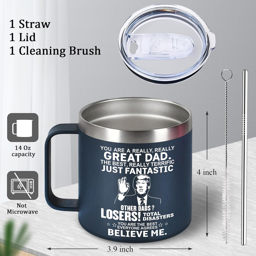 Store New Arrivals Add to Favorite View Feedback Contact Fathers Day Funny Gifts for Dad Husband Men Him from Daughter Son Kids Wife - 14 OZ Coffee Mug - Birthday, Retirement, Anniversary Gag Presents Ideas for Papa Step Dad, Stocking Stuffers for Christmas Description Unit Count 1.0 Count Style Casual Number of Items 1 Color Blue Country of Origin China Material Stainless Steel Capacity 14 ounces Item Weight 13.7 ounces Theme Holiday Occasion Father's Day Included Components Cups Special Feature Manual Product Dimensions 4"W x 5"H Manufacturer Store 🥤A great gift for dad, This dad mug is appropriate for one of the most beautiful time of the year. Perfect & Daily used gift for dad, father in law, stepdad,stepfather, grandpa, husband, husband who's about to be a new father or special parents in your life.With this humorous dad present of mug, you can let your dad enjoy his favorite beverages wherever he is. 🥤Observe Him - Imagine him smiling and thinking of you every time he drinks from this mug, whether it's coffee, water, beer, wine, a mixed drink, or him favorite beverage. Our personalized tumblers will serve as a constant reminder of how amazing he is, and they will make him big milestone occasion extremely memorable. 🥤Premium Material - 18/8 stainless steel is used to make this product. Rust and scratch resistance, light weight and portability, durability and stability, and easy hand washing are all features of this product. A reusable drink straw, a straw cleaning brush, and a BPA-free drink cover are all included with this mug. 🥤Double-Walled Design - The high-quality stainless steel and the double-walled insulation design, which implies that regardless of how much abuse your cup receives, your drink will maintain its temperature, The design of walled exterior with a vacuum sealed area between the walls, which can help maintain your drinks temperature for a long time and protects your hands against the temperature. 🥤Widely Applicable - Suitable for its perfect for birthday gifts for dad, fathers day gifts from daughter son, best dad ever gifts, gifts for dads birthday, gifts for dad who have everything, Christmas gifts, Retirement gifts, Anniversary gifts, gift for new dad, dad birthday gift from son, funny gifts for dad. Product Description Parenting Can Be Fun! Our Funny Mugs Are The Perfect Conversation Starter Perfect & Daily used gift for dad, father in law, stepdad,stepfather, grandpa, husband, husband who's about to be a new father or special parents in your life.With this humorous dad present of mug, you can let your dad enjoy his favorite beverages wherever he is. Observe Him Imagine him smiling and thinking of you every time he drinks from this tumbler, whether it's coffee, water, beer, wine, a mixed drink, or him favorite beverage. Our personalized tumblers will serve as a constant reminder of how amazing he is, and they will make him big milestone occasion extremely memorable. Premium Material 18/8 stainless steel is used to make this product. Rust and scratch resistance, light weight and portability, durability and stability, and easy hand washing are all features of this product. A reusable drink straw, a straw cleaning brush, and a BPA-free drink cover are all included with this mug. Widely Applicable Suitable for its perfect for birthday gifts for dad, fathers day gifts from daughter son, best dad ever gifts, gifts for dads birthday, gifts for dad who have everything, Christmas gifts, Retirement gifts, Anniversary gifts, gift for new dad, dad birthday gift from son, funny gifts for dad. ABOUT US Whether you are looking for entertainment, education or convenience, you will find it at our online store. We have a wide range of products to suit your needs and preferences, from books and movies to electronics and toys. You can also shop for clothing, tools, home and garden items, and more at affordable prices. Browse our products and discover the benefits of shopping online with us. SHIPPING We are always working hard to ensure your package arrives as soon as possible. Please understand that some factors like weather, high postal traffic, and the performance of shipping companies are outside of our control. We offer free shipping to the US and ship within 3 business days of payment, usually sooner. RETURNS Dear customer, we will do our best to make sure the product you receive arrives to you on time and as expected. If you are not satisfied with your purchase, please contact us within 30 days of receiving your order to process a return. PAYMENT We accept PayPal. CONTACT US This page content is yet to come Please ad us to your favorite seller and visit again later Thank You CUSTOMER SATISFACTION We try our very best to make sure every customer is completely satisfied. If there's a problem, message us! We're happy to help.