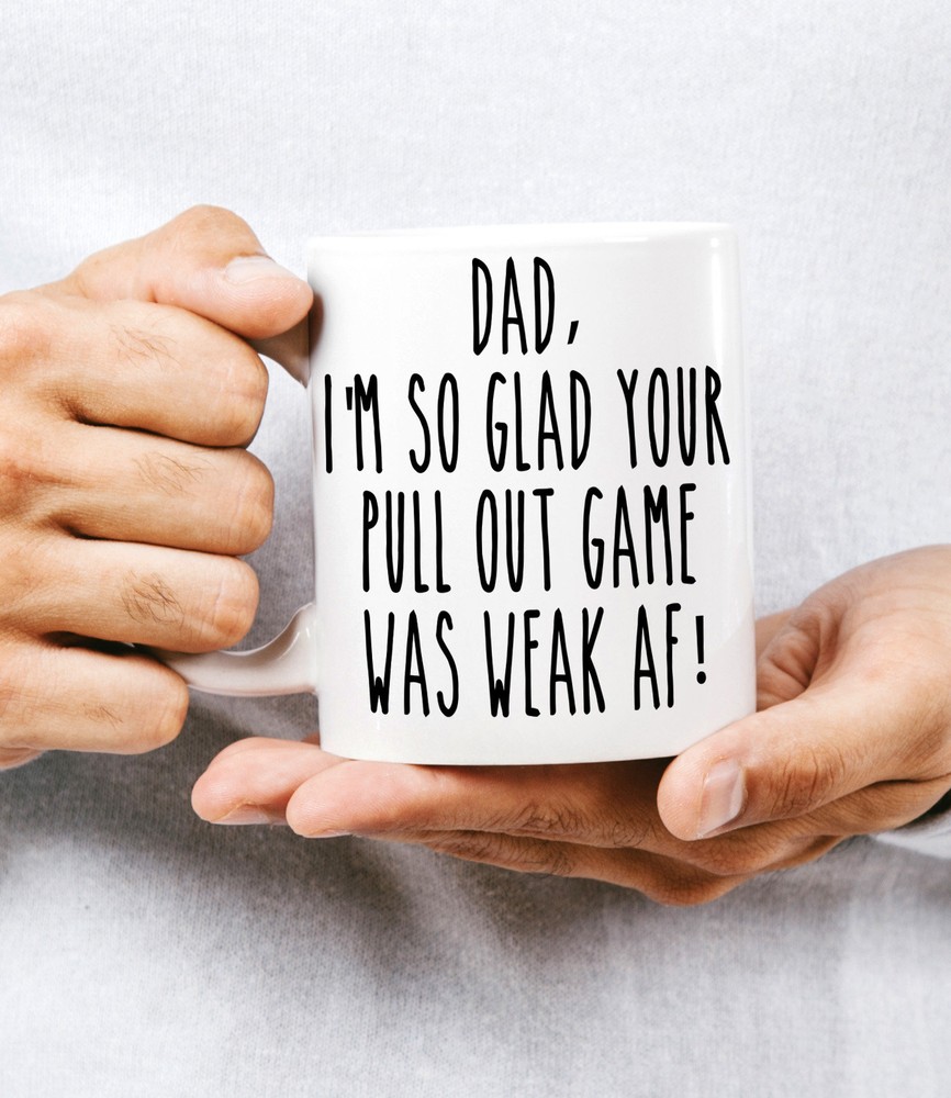 Funny Father's Day Gift Pull Out Game Weak Mug Father's Day Mug Dad Gift Mug Product Details.. This high quality 11oz. ceramic white mug has a premium hard coat that provides crisp and vibrant color reproduction sure to last for years. Perfect for all hot & cold beverages. The highest quality printing possible is used. It will never fade no matter how many times you wash it. Material: 100% Ceramic. Print both sides. Dishwasher and Microwave Safe. High Gloss + Premium White Finish. Printed in the U.S.A. Personalized & Custom. We support personalized and custom mug to add custom, when placing an order, you can add notes to the "order note" in shipping address section. Also you can contact us directly via message. Shipping Info. Ready to ship in 1 to 2 business days, All products are made-to-order and proudly printed in the United States. Shipped by USPS and DHL, You will receive your order in 5-7 days. Replace & Refund. All products are defective during shipping broken, chipped will be replaced free of charge. You are not satisfied with the product, we will refund 100% money to you. If any other issues arise, please do not hesitate to message, we would be more than happy to assist you.