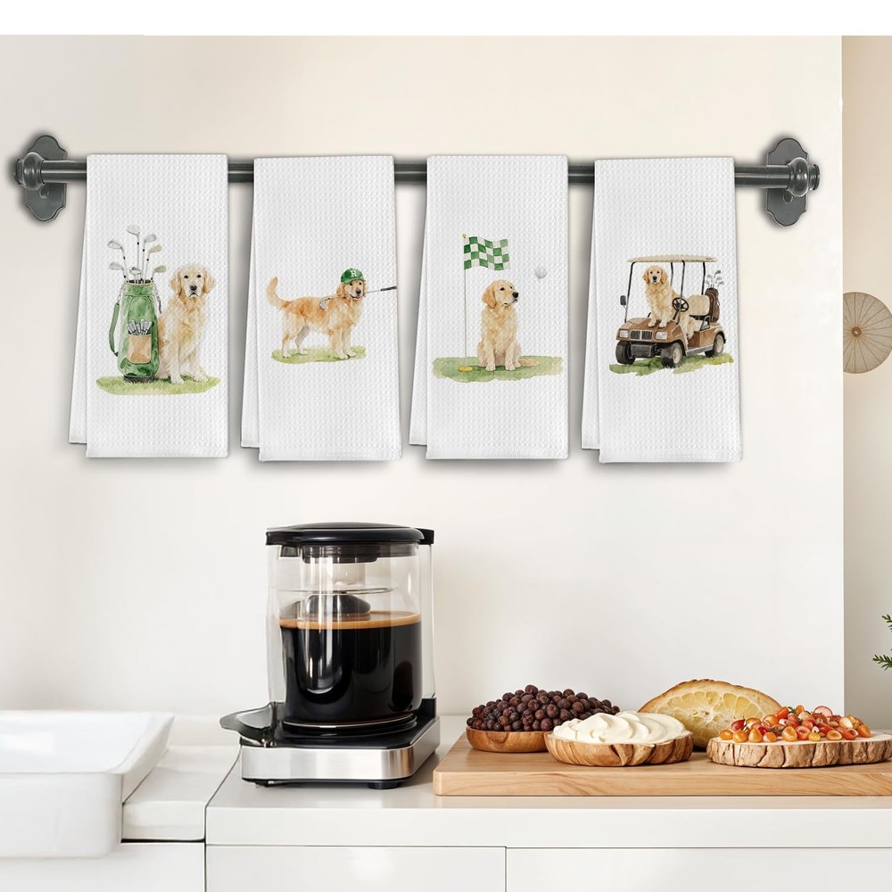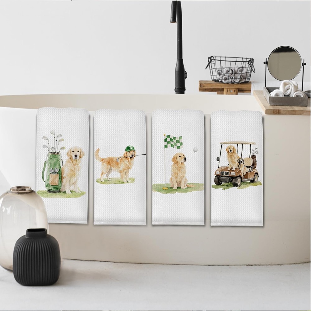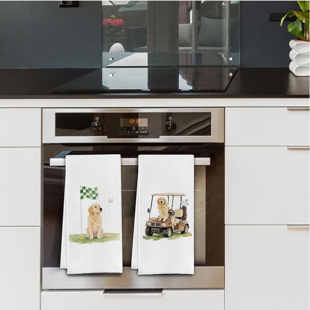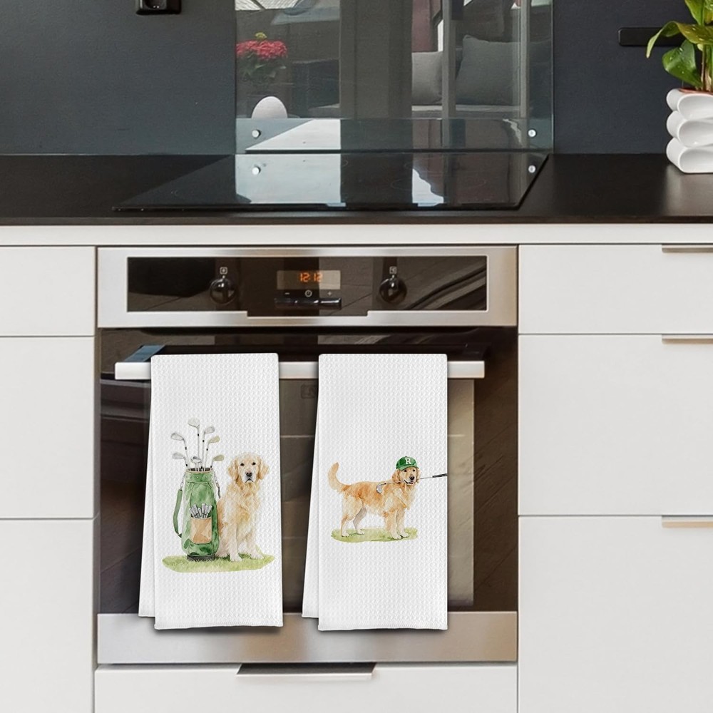 Funny Golden Retriever Kitchen Towels,Golf Themed Dish Tea Towel,Gifts for Go...