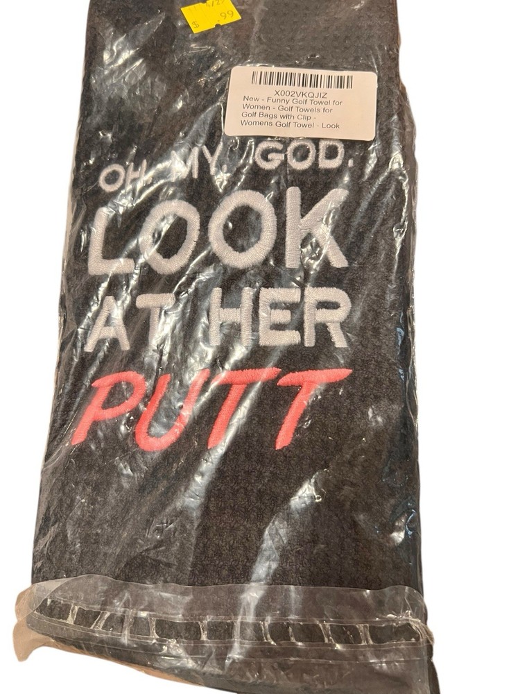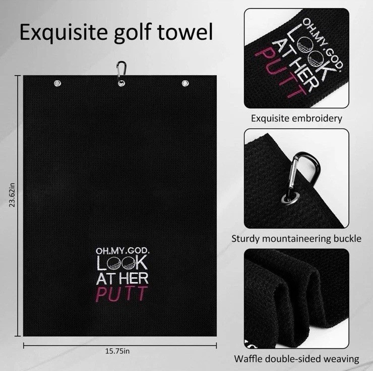 This black golf towel is perfect for any avid golfer. With a witty phrase written on it, "Oh My God ,Look At Her Putt," this towel is sure to add some humor to your golf bag or be the perfect gift for the golfer in your life. Made of high-quality cotton, it is both soft and durable. Ideal for wiping away dirt and grime from your clubs or even using as a fun towel to dry off with. This golf towel is a must-have accessory for any golfer looking to add some personality to their game. We ship FAST! #funnygift #funnygolf #golftowel #gaggift #whiteelephant #golfgift *colors may vary due to lighting or viewing devices *Feel free to reach out with any Questions / Clarification or to request any additional photos. We are happy to help!