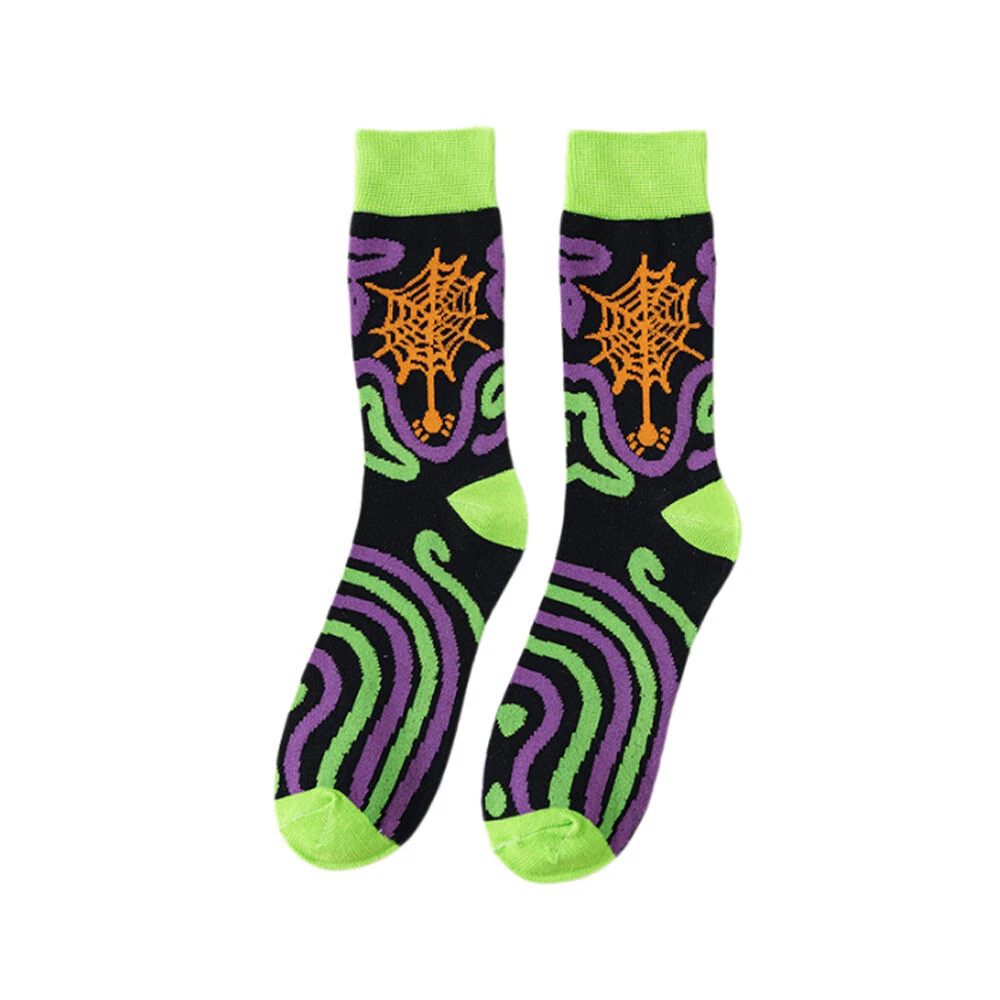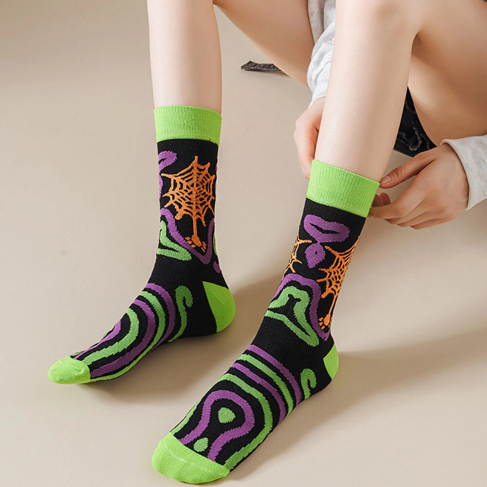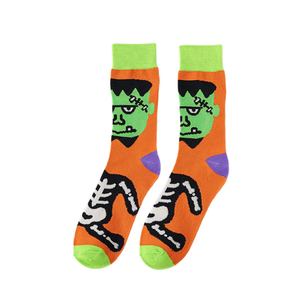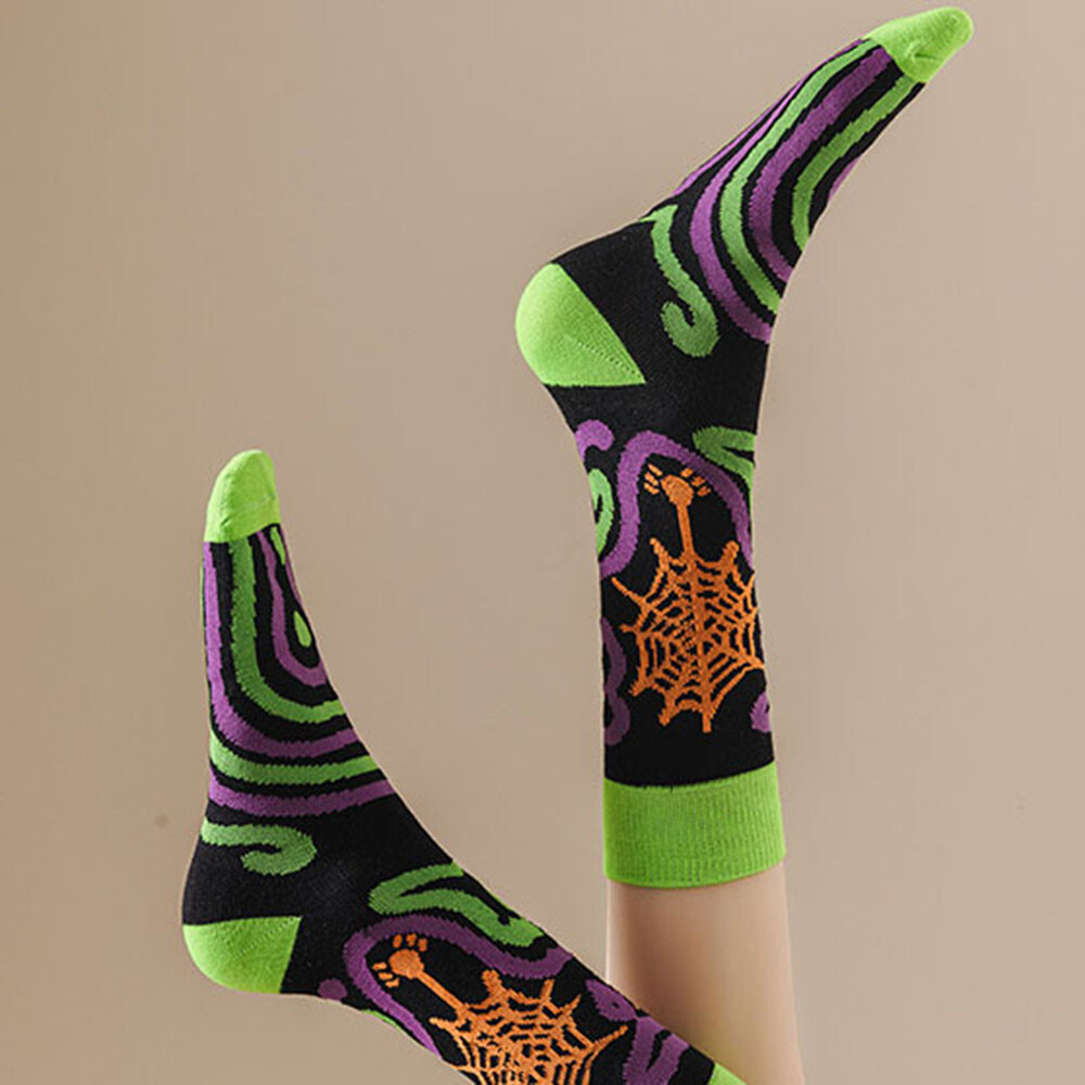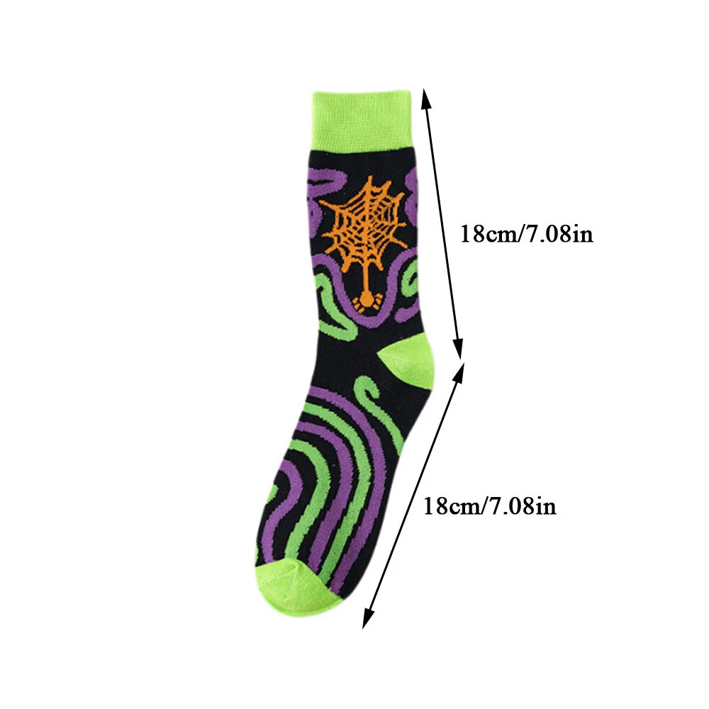 Package:1 pairs of socks(Other Accessories are not included) Material:cotton Colors:pumpkin,little monsters,spider web,bat,human skeleton Size:foot length 18cm/7.08",tube length 18cm/7.08" Pattern:Halloween printed Thickness:standard Season:Spring,Autumn,Winter Garment:Hand washing or machine washing,line dry. Attentions: 1.The Real Object May Exist Slightly Colors Differences Compared To Images As Different Computers Display.Caution If Minding,Thanks. 2.There Might Be A Manual Measuring 1-3 cm Error.Sorry For Any Inconvenience. 3.Please Prevail On Real Item, Model Images For Reference Only. 4.Attention!!!Please check the size chart carefully before placing the order.