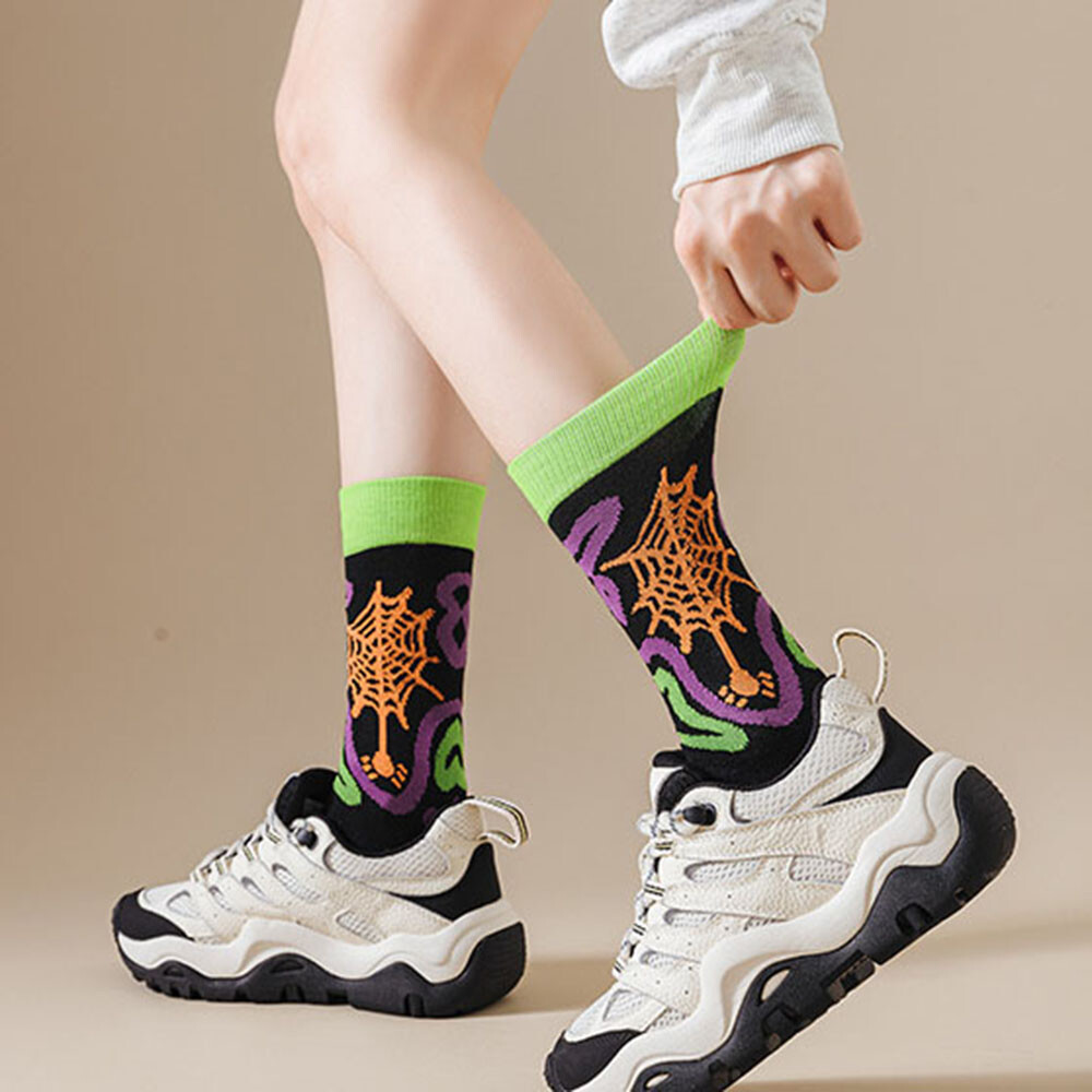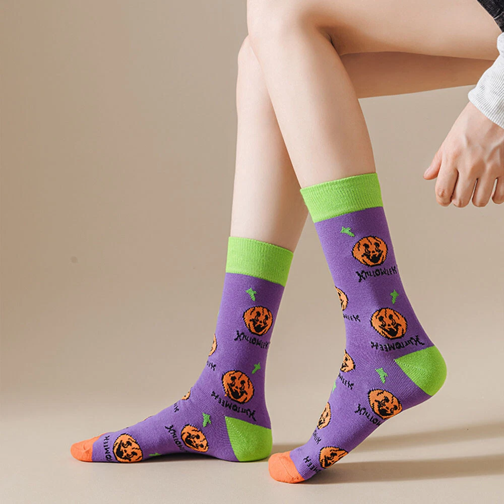Funny Halloween Mid-Calf Socks Street Socks HosieryPumpkin Pattern Cartoon wi