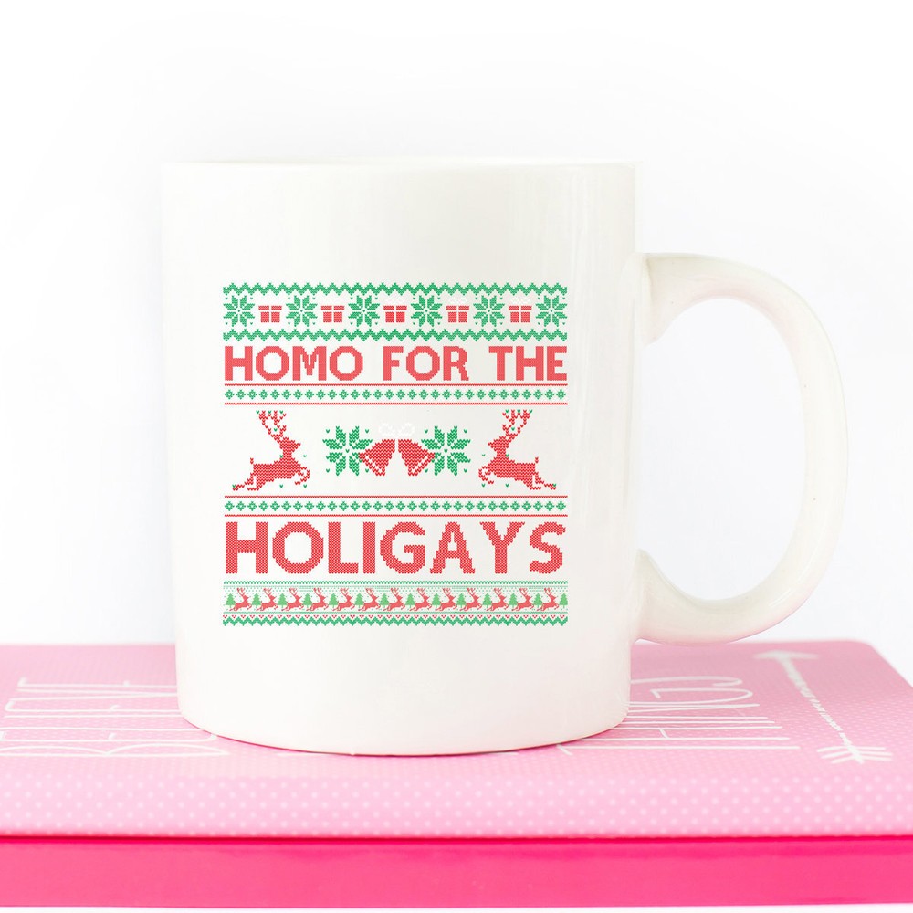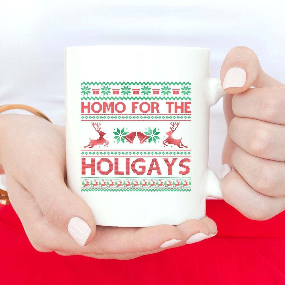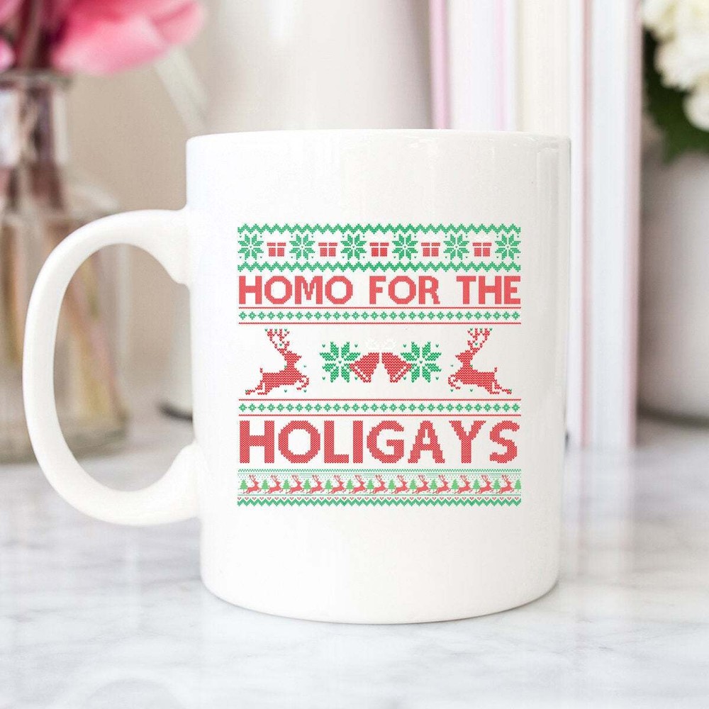 Funny Christmas Gift For Gay Friend Funny Happy Holigays Christmas Gay Mug Funny Product Details.. This high quality 11oz. ceramic white mug has a premium hard coat that provides crisp and vibrant color reproduction sure to last for years. Perfect for all hot & cold beverages. The highest quality printing possible is used. It will never fade no matter how many times you wash it. Material: 100% Ceramic. Print both sides. Dishwasher and Microwave Safe. High Gloss + Premium White Finish. Printed in the U.S.A. Personalized & Custom. We support personalized and custom mug to add custom, when placing an order, you can add notes to the "order note" in shipping address section. Also you can contact us directly via message. Shipping Info. Ready to ship in 1 to 2 business days, All products are made-to-order and proudly printed in the United States. Shipped by USPS and DHL, You will receive your order in 5-7 days. Replace & Refund. All products are defective during shipping broken, chipped will be replaced free of charge. You are not satisfied with the product, we will refund 100% money to you. If any other issues arise, please do not hesitate to message, we would be more than happy to assist you.