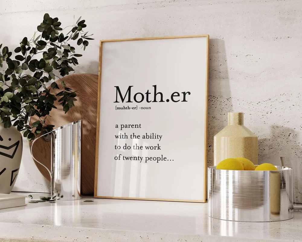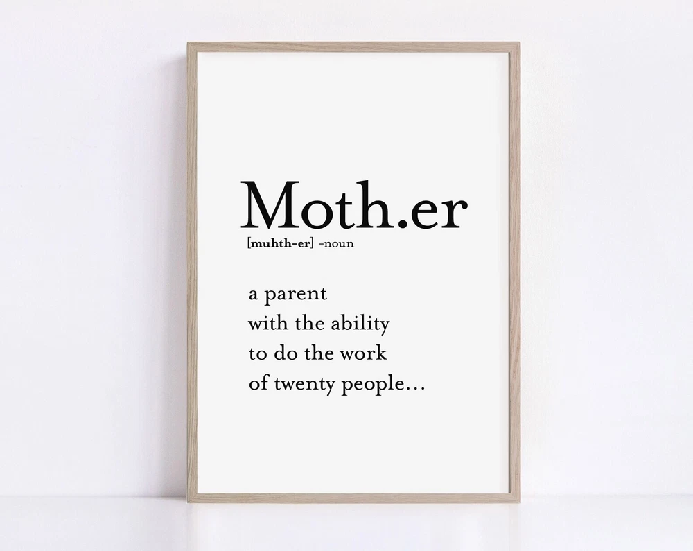 Funny Mother Definition Print Mothers Printable Wall Art Poster Cute Quotes Wall Art For Mom Printable Wall Art Material: Premium luster photo paper Print type: Inkjet printing One side printed + The finish provides the highest possible resolution and color saturation + Lasts up to 200 years in color and 400 years in black-and-white + Printed on high-quality resin-coated photo base paper medium + Posters can be hung with double-sided tape, tacks, or framed + Hand washing with a gentle cry cloth is recommended for extended durability I will hand select the best choice of paper for your chosen design to ensure top quality results for a beautiful, bright and luxurious print. All prints are sealed in cellophane slips for protection during transportation, and are shipped in a protective cardboard envelope.