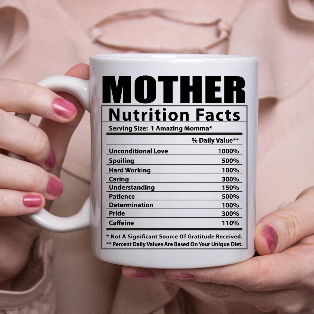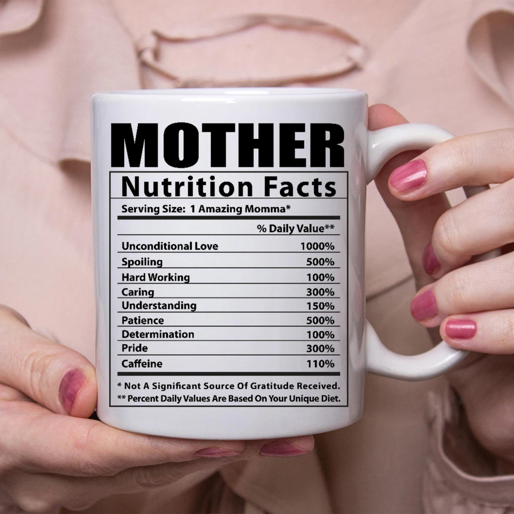 Funny Mother Gifts Nutritional Facts White Coffee Mug Product Details.. This high quality 11oz. ceramic white mug has a premium hard coat that provides crisp and vibrant color reproduction sure to last for years. Perfect for all hot & cold beverages. The highest quality printing possible is used. It will never fade no matter how many times you wash it. Material: 100% Ceramic. Print both sides. Dishwasher and Microwave Safe. High Gloss + Premium White Finish. Printed in the U.S.A. Personalized & Custom. We support personalized and custom mug to add custom, when placing an order, you can add notes to the "order note" in shipping address section. Also you can contact us directly via message. Shipping Info. Ready to ship in 1 to 2 business days, All products are made-to-order and proudly printed in the United States. Shipped by USPS and DHL, You will receive your order in 5-7 days. Replace & Refund. All products are defective during shipping broken, chipped will be replaced free of charge. You are not satisfied with the product, we will refund 100% money to you. If any other issues arise, please do not hesitate to message, we would be more than happy to assist you.
