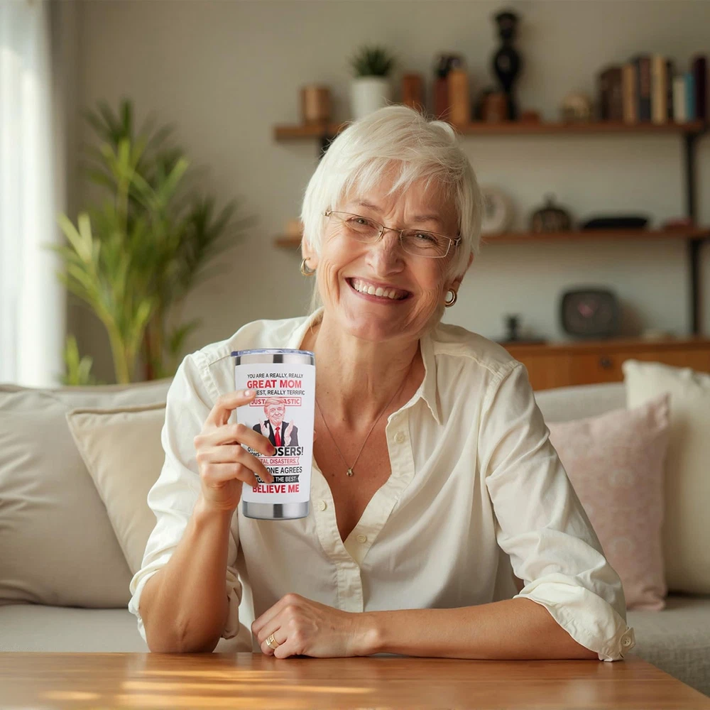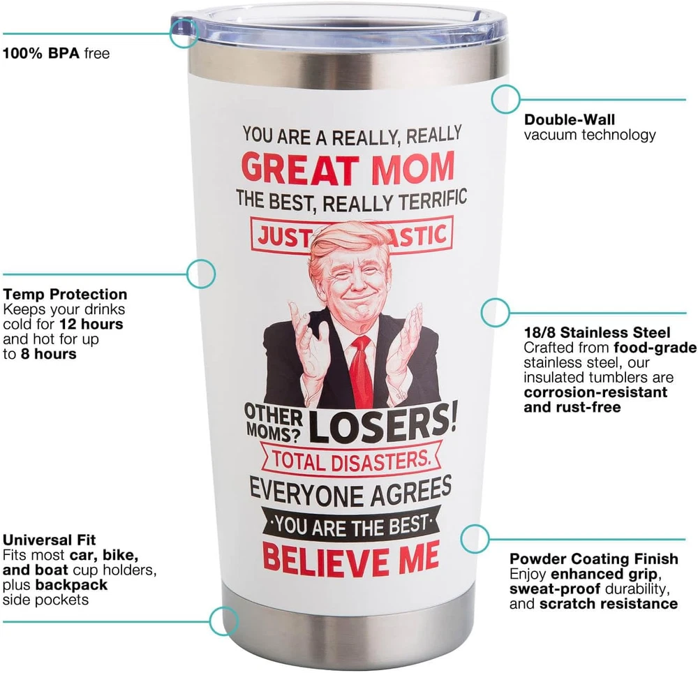 Store New Arrivals Add to Favorite View Feedback Contact Funny Mothers Day Gifts for Mom Drinking Cup, Cool Birthday Gifts for Mom Coffee Tumbler, the Best Mom Gifts from Son, Good Christmas Presents for Mom, Trump Best Mom Ever Mug, Your Mom Gift Ideas Description Item model number wintbl Style Casual Number of Items 1 Pattern Letter Print Country of Origin China Theme Mothers Day Unit Count 1.0 Count Product Dimensions 3.6"W x 6.9"H Material Stainless Steel Capacity 20 Fluid Ounces Package Type Gift Box Age Range (Description) Adult Finish Type Glossy Specific Uses For Product Cold Drinks, Hot Drinks Included Components Lid Reusability Reusable Occasion Mother's Day, Christmas, Birthday Item Weight 0.6 Pounds Item Weight 9.6 ounces Material Feature Insulated Material Type Free BPA Free Special Feature Leak Proof, Vacuum Insulated, Double Wall, Rust Resistant, Scratch Resistant Color Mom Shape Tumblers Recommended Uses For Product Travel, Home Manufacturer Winzsox Brand Winzsox Product Care Instructions Dishwasher Safe Size 20 oz 🌷 Perfect Christmas Presents for Mom: This 20oz best mom cup is the perfect gift for mom, whether for Christmas, Mother’s Day, or milestone birthdays like the 30th, 40th, 50th, 60th, 70th, 80th, and even 90th. It’s thoughtful for any occasion. 🌷 Versatile Gifts for Mom: Whether from a daughter, son, or kids, this best mom ever tumbler is ideal for mom, stepmom, step mom, bonus mom, or even your mother-in-law. A versatile present that makes any celebration special and shows appreciation. 🌷 Premium Quality for Everyday Use: Made from 18/8 food-grade stainless steel with a durable powder coating, this mothers day cup is sweatproof and rust-resistant. Designed for everyday use, it ensures mom enjoys her favorite drinks in style. 🌷 Superior Temperature Retention: Double-wall vacuum insulation keeps drinks cold for over 12 hours and hot for 8 hours. Perfect for coffee, tea, soda, wine, or beer—this best mom ever mug fits seamlessly into any mom’s daily routine. 🌷 Upgraded BPA-Free Lid: The 100% BPA-free lid features a 2x stronger silicone sealing ring, ensuring a better leak-proof fit. Mom can enjoy her drinks without spills, making this mom tumbler a convenient and worry-free choice. Product Description The Perfect 20oz Gift Made with Heart Built to Last Crafted from 18/8 food-grade stainless steel, this mothers day cup is durable and ideal for everyday style. Enjoy Every Sip Our drinking cup for mom has double wall insulation, keeping drinks hot for hours while staying cool to the touch. Sip with Confidence This mom coffee cup features a leak-proof lid, ensuring no spills or mess, perfect for enjoying drinks with confidence on the go. Finish That Endures The mom coffee tumbler's powder coating provides a vibrant, durable surface that resists wear and adds style. ABOUT US We offer the best prices around on high quality products. Our E-store includes media such as books, movies, music and games while offering electronics, toys, sporting apparel, clothing, tools, general home, garden items and more. SHIPPING We are always working hard to ensure your package arrives as soon as possible. Please understand that some factors like weather, high postal traffic, and the performance of shipping companies are outside of our control. We offer free shipping to the lower 48 states and ship within 2 business days of payment, usually sooner. We do not accept P.O. Boxes. Please provide a physical address. RETURNS We offer a 30-Day Return Policy on items which you are not completely satisfied with. You have the option for a full-refund or an exchange of the item. No returns are available on items shipped outside of the USA. PAYMENT We accept PayPal. CONTACT US This page content is yet to come Please ad us to your favorite seller and visit again later Thank You CUSTOMER SATISFACTION We try our very best to make sure every customer is completely satisfied. If there's a problem, message us! We're happy to help.