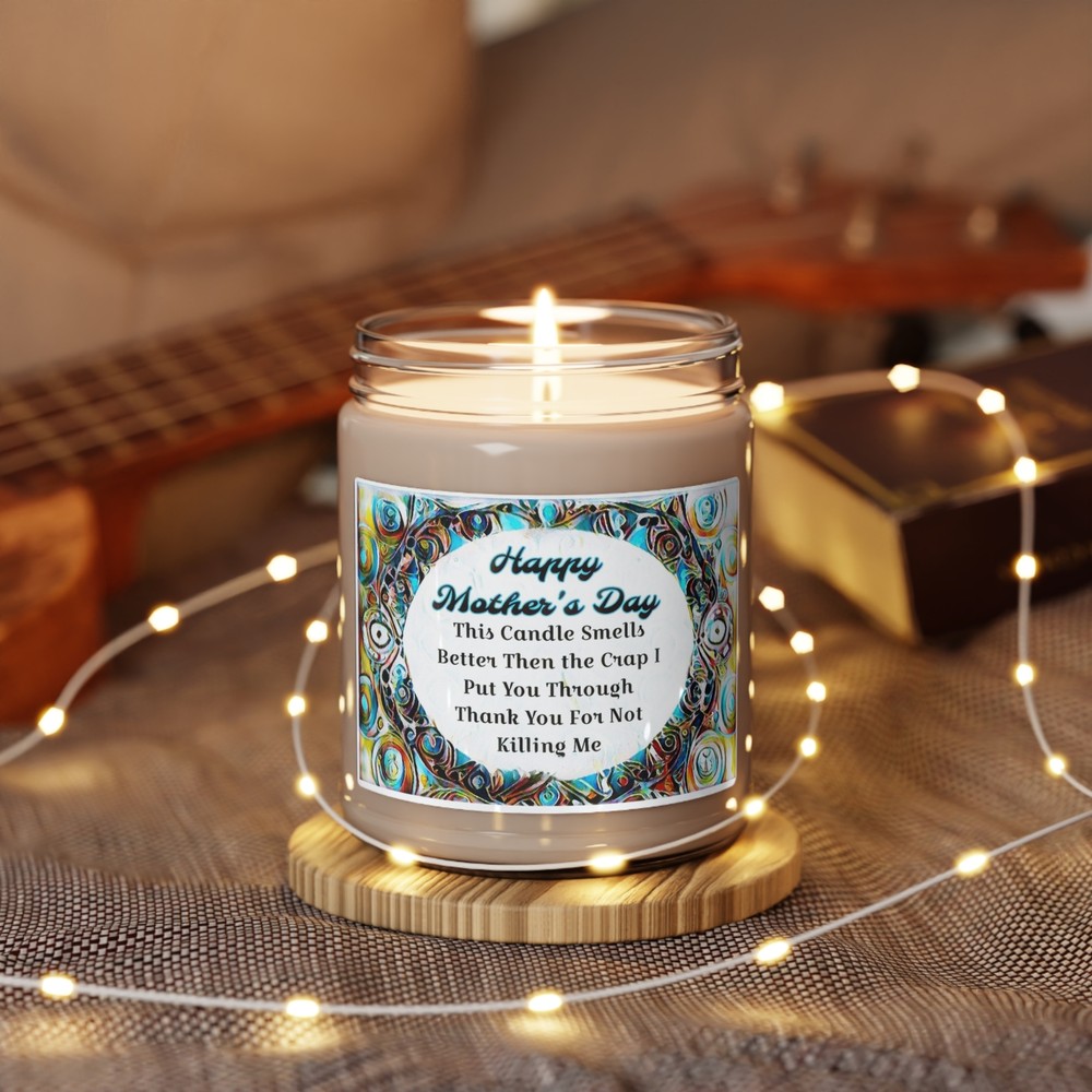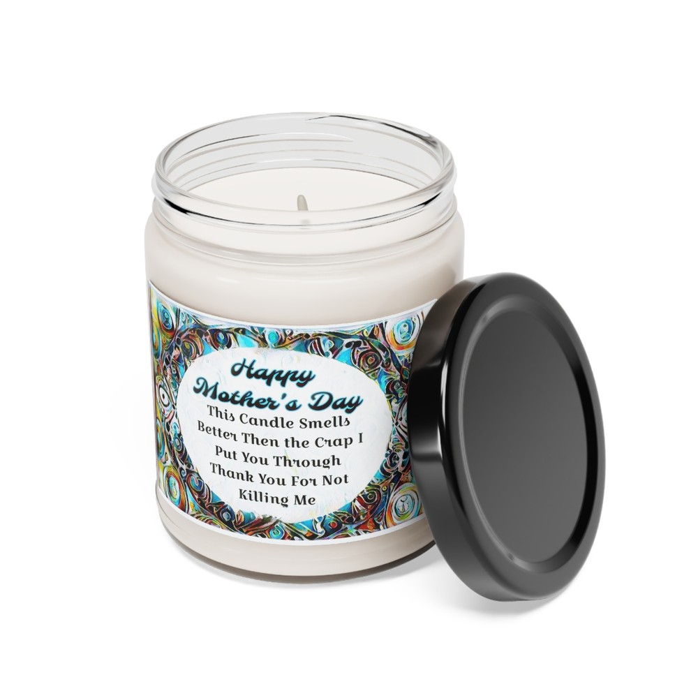 "Happy Mother's Day This Candle Smells Better then the Crap I Put You Through Thanks for not Killing Me" What a Wonderful and Fun way to Honor your Mother On Her Special Day. This Beautiful 9 oz Candle with immersive aromas in Atlanta Whisper Scent comes in a beautifully designed Glass Jars in size (2.8″ × 3.5") (7.1cm × 8.8cm). Made with 100% natural soy wax blend, each candle features a 100% cotton wick and a permanent adhesive label where your custom designs can come alive. .: Materials: 100% natural soy wax blend, 100% cotton wick and a glass jar .: One size: 2.8″ × 3.5" (7.1cm × 8.9cm) .: Burning time: 50-60 hours .: Glossy permanent adhesive label .: Choose from nine different aromatic scents .: Assembled in the USA Mother Approved Merchandise