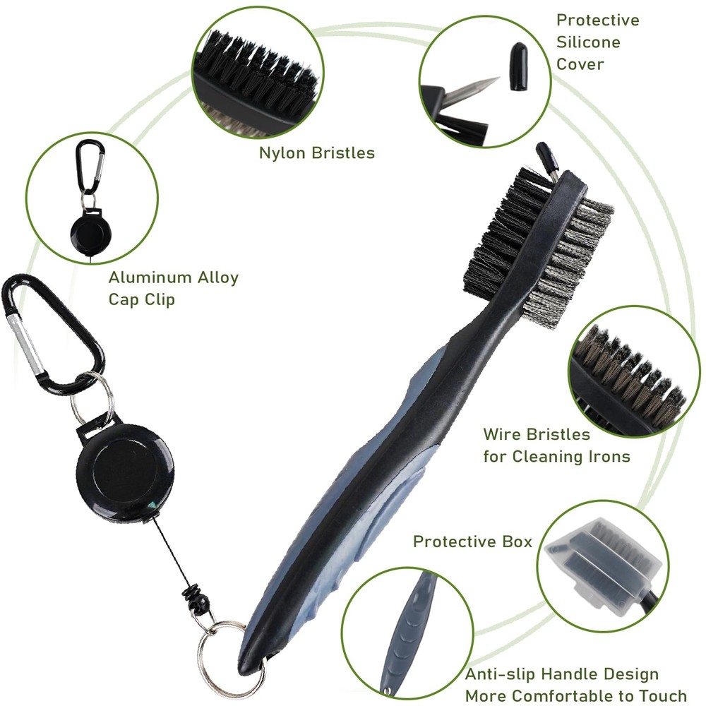 Golf Towel Funny Golf Towels for Golf Bags for Men Women with Clip Carabiner,Microfiber Waffle Pattern Disc Golf Towel Rag Golf Accessories Gifts for Men Women(ToweL+Brush) Efficient Cleaning: Our golf towel material is made of microfiber and designed with a waffle texture. While ensuring super absorbency, it can penetrate deep into the dimples on golf balls and the grooves of clubs to remove dirt, mud, sand and grass. EASY TO CARRY: The golf towel measures 15.7" x 23.6" with a carabiner. Allowing you to clip the towel somewhere within reach on the course, such as on your golf bag, belt, or golf cart, so you can take advantage of this super absorbent microfiber towel to keep your gear clean at all times. Club Brush with Retractable Clip: Our golf brush is ergonomically designed with a comfortable grip shape. Thanks to the 2-foot long built-in retractable clip, the brush can be easily attached to your golf bag for quick and easy use. The brush can easily scrub away stubborn dirt from any iron/wood club surfaces, and the aluminum spikes are perfect for cleaning your club grooves or golf shoes. Essential Golf Cleaning Kit: Each of our golf towels has a fun and unique pattern. A multi-purpose golf brush is also included. This is an ideal gift for your father, husband, boyfriend on Father's Day, Christmas and birthdays. Package: You will get 1 pattern golf towel with carabiner , 1 multifunctional golf brush. If you have any problem, please contact us and we will do our best to resolve it.