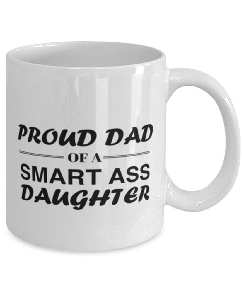 Gift From Daughter Funny Coffee Mug Proud Dad Of Smartass Daughter Mug For Dad Product Details.. This high quality 11oz. ceramic white mug has a premium hard coat that provides crisp and vibrant color reproduction sure to last for years. Perfect for all hot & cold beverages. The highest quality printing possible is used. It will never fade no matter how many times you wash it. Material: 100% Ceramic. Print both sides. Dishwasher and Microwave Safe. High Gloss + Premium White Finish. Printed in the U.S.A. Personalized & Custom. We support personalized and custom mug to add custom, when placing an order, you can add notes to the "order note" in shipping address section. Also you can contact us directly via message. Shipping Info. Ready to ship in 1 to 2 business days, All products are made-to-order and proudly printed in the United States. Shipped by USPS and DHL, You will receive your order in 5-7 days. Replace & Refund. All products are defective during shipping broken, chipped will be replaced free of charge. You are not satisfied with the product, we will refund 100% money to you. If any other issues arise, please do not hesitate to message, we would be more than happy to assist you.