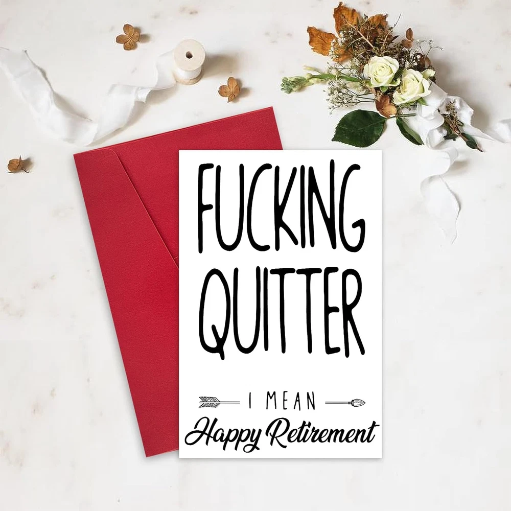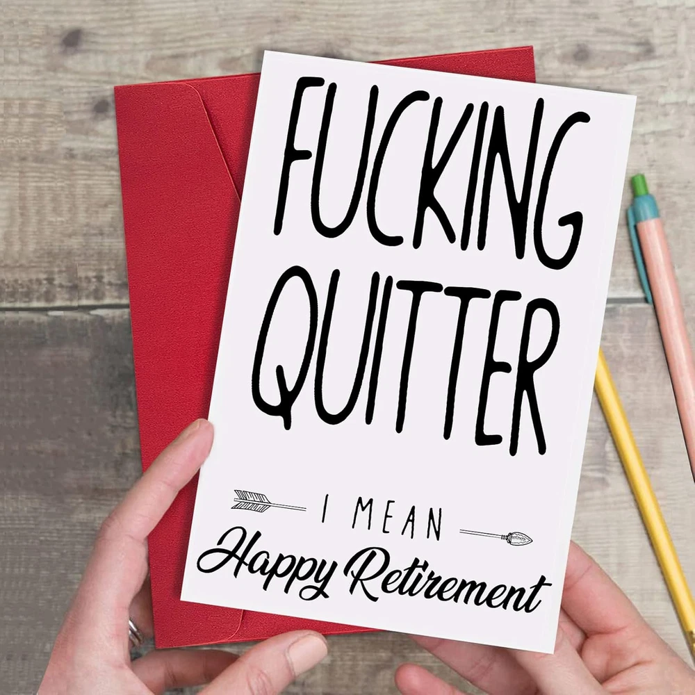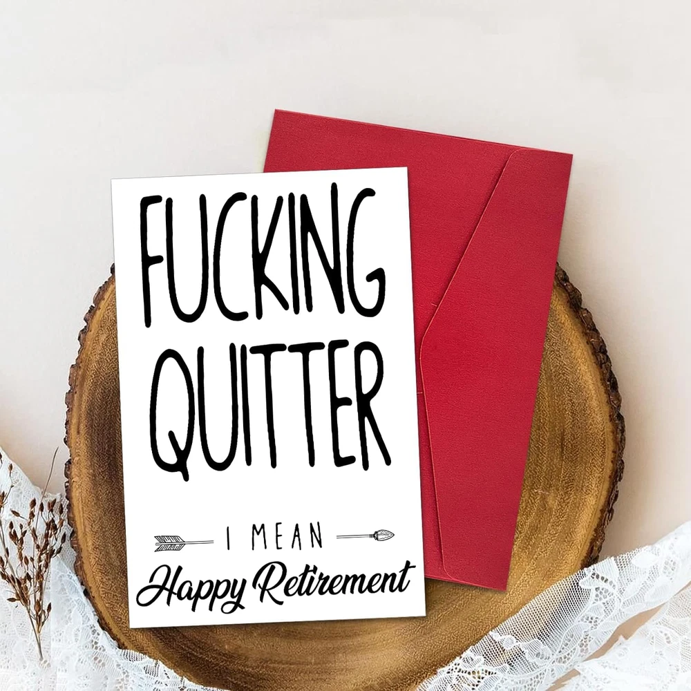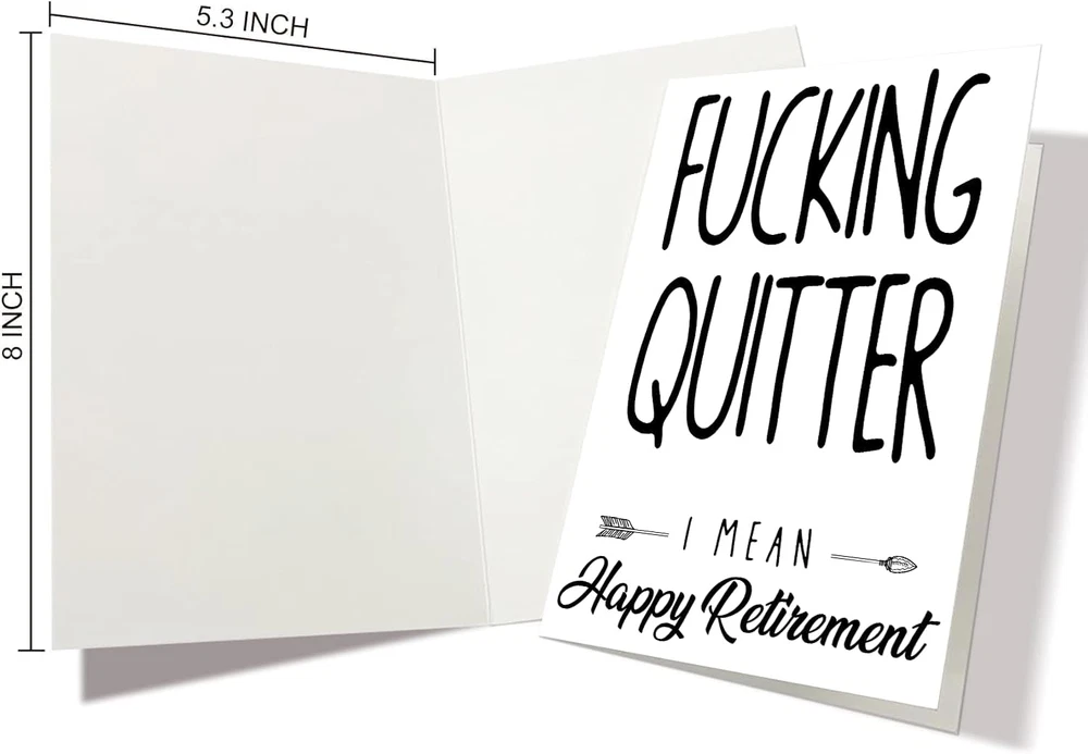 Store New Arrivals Add to Favorite View Feedback Contact Funny Retirement Card for Coworker Colleague Friend, Humor Retiring Card Gift for Him Her, Fucking Quitter I Mean Happy Retirement Description Number of Items 1 Color 8 Manufacturer Part Number 1 Item Weight 1.13 ounces Package Dimensions 8.19 x 5.67 x 0.28 inches π Funny Retirement Card for Coworker Colleague Friend: Celebrate the next chapter in their life with humor using this retirement card, perfect for coworkers, colleagues, and friends. π Premium Quality Material: Crafted from high-quality 300gsm cardstock, this card offers durability and a luxurious feel, ensuring it stands out as a premium gift. Paired with a high-end pearl shimmer envelope for an elegant presentation. π Generous Size: Measuring 8" x 5.3" inches when folded, this card provides ample space for your personal message to your retiring coworker or friend. π Humor Retiring Card Gift for Him Her: Add a touch of humor to their retirement celebration with this witty card, suitable for both male and female retirees. π Fucking Quitter I Mean Happy Retirement: With its humorous message, this card offers a lighthearted way to bid farewell and wish them well in retirement. π Funny Retirement Card for Coworker Colleague Friend: Celebrate the next chapter in their life with humor using this retirement card, perfect for coworkers, colleagues, and friends. π Premium Quality Material: Crafted from high-quality 300gsm cardstock, this card offers durability and a luxurious feel, ensuring it stands out as a premium gift. Paired with a high-end pearl shimmer envelope for an elegant presentation. π Generous Size: Measuring 8" x 5.3" inches when folded, this card provides ample space for your personal message to your retiring coworker or friend. π Humor Retiring Card Gift for Him Her: Add a touch of humor to their retirement celebration with this witty card, suitable for both male and female retirees. π Fucking Quitter I Mean Happy Retirement: With its humorous message, this card offers a lighthearted way to bid farewell and wish them well in retirement. Policy on Product Sourcing and Fulfillment Dear Valued Customers, We would like to clarify an important aspect of our business operations to ensure transparency and trust in our relationship with you. Product Fulfillment: Fulfillment by Amazon (FBA): The products are stored in Amazon Fulfillment Centers. This storage solution ensures that the inventory is kept in a secure and climate-controlled environment, which helps maintain the quality and safety of the products. Efficient Delivery: Utilizing Amazon's fulfillment services allows us to leverage their robust logistics network to provide you with fast and reliable shipping. This means you receive your purchases in a timely manner with the added assurance of Amazon's trusted delivery systems. Customer Assurance: Quality Control: Every product is carefully selected and undergoes rigorous quality checks before being listed for sale. Our commitment is to provide you with high-quality items that meet your expectations. Secure Storage: Amazon's Fulfillment Centers are renowned for their high standards of security and efficiency. Your products are stored safely until they are shipped to you. Customer Support: Should you have any questions or concerns regarding your purchase, our customer support team is readily available to assist you. We are dedicated to ensuring your satisfaction with every transaction. We appreciate your business and are committed to providing you with a seamless and satisfactory shopping experience. Thank you for your trust and understanding. Sincerely, -Manager- Shipping Policy and Expectations Dear Valued Customers, We are committed to ensuring that your package arrives as quickly as possible. However, we kindly ask for your understanding regarding certain factors that may occasionally affect shipping times. Our Commitment: Prompt Processing: We strive to process and dispatch your orders promptly to minimize any delays. Reliable Shipping Partners: We work with reputable shipping companies to ensure your packages are handled with care and delivered efficiently. External Factors: While we do everything within our power to expedite your order, please note that some factors are beyond our control: Weather Conditions: Severe weather can impact shipping routes and cause delays. High Postal Traffic: During peak seasons, such as holidays, the increased volume of packages can lead to longer delivery times. Shipping Company Performance: The performance and schedules of shipping companies may vary, potentially affecting delivery times. We appreciate your patience and understanding in these situations. Rest assured, we are doing everything possible to get your package to you as soon as possible. Customer Support: If you have any questions or concerns about your order, please do not hesitate to contact us. Our customer support team is here to assist you and provide any necessary updates on your shipment. Thank you for your trust and continued business. Shipping Policy and Customer Satisfaction Shipping Information: Service Area: We offer shipping to the lower 47 states. Please confirm with us about the delivery date before completing your purchase. Thank you. Address Requirements: We do not accept P.O. Boxes. Please provide a physical address for delivery. Shipping Restrictions: Unfortunately, we are unable to ship items to the state of Ohio and California due to shipping agreements and restrictions. International Shipping: eBay International Shipping Hub: For shipping outside of the continental USA, we only use eBay's International Shipping Hub. The item is shipped to Illinois and then sent to the rest of the world. Duties and Taxes: International customers are responsible for all duties and taxes. Please continue to check out to calculate the shipping costs for your country. Inquiries: Messages regarding eBay's International Shipping Program must be directed to eBa