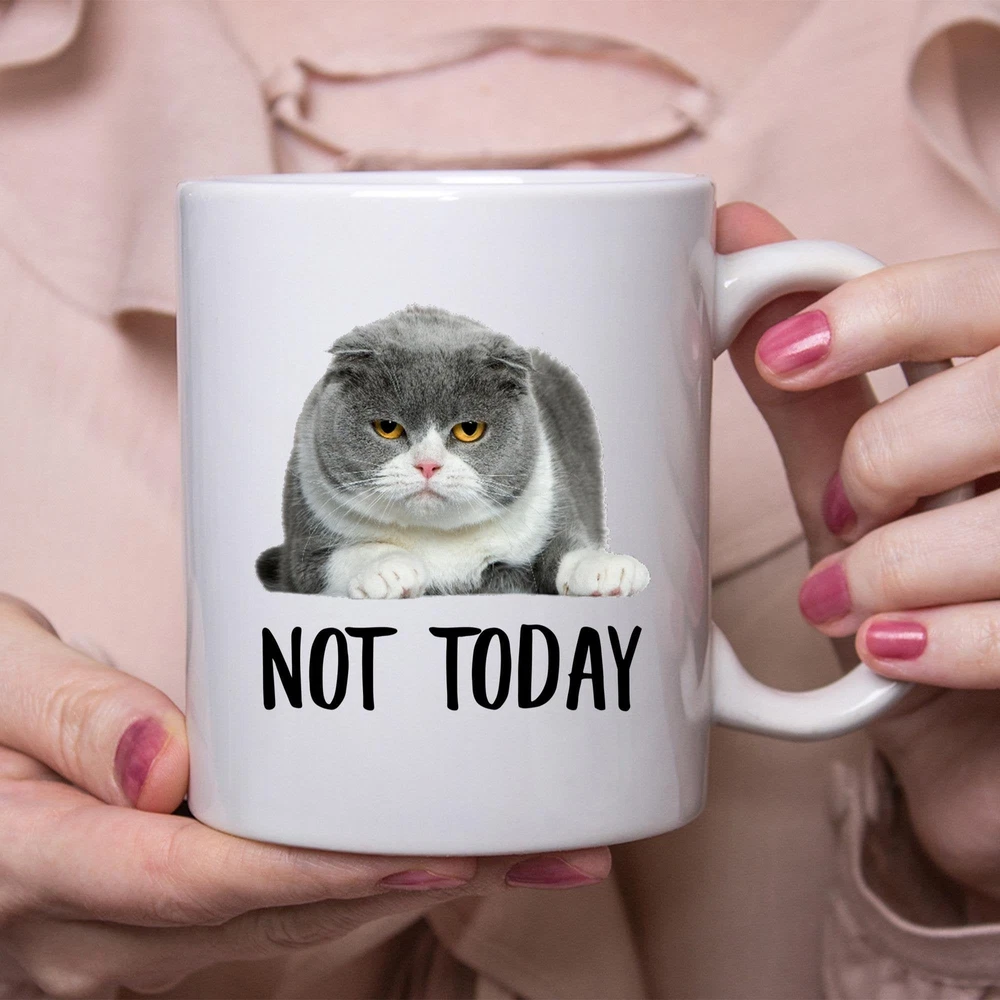 Funny Scottish Fold Cat Lilac Not Today Cat Mug Lazy Gift For Cats Lovers Coffee Product Details.. This high quality 11oz. ceramic white mug has a premium hard coat that provides crisp and vibrant color reproduction sure to last for years. Perfect for all hot & cold beverages. The highest quality printing possible is used. It will never fade no matter how many times you wash it. Material: 100% Ceramic. Print both sides. Dishwasher and Microwave Safe. High Gloss + Premium White Finish. Printed in the U.S.A. Personalized & Custom. We support personalized and custom mug to add custom, when placing an order, you can add notes to the "order note" in shipping address section. Also you can contact us directly via message. Shipping Info. Ready to ship in 1 to 2 business days, All products are made-to-order and proudly printed in the United States. Shipped by USPS and DHL, You will receive your order in 5-7 days. Replace & Refund. All products are defective during shipping broken, chipped will be replaced free of charge. You are not satisfied with the product, we will refund 100% money to you. If any other issues arise, please do not hesitate to message, we would be more than happy to assist you.