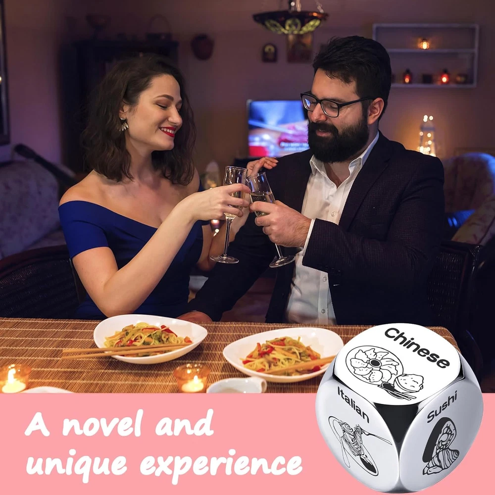【The Charming Food Decision Dice: A Valentine's Day Delight】Searching for the perfect Valentine's Day gift? Our Food Decision Dice is just the thing! It combines romance, fun, and playfulness. Use it on date nights for a pleasant surprise, creating memories . It's not just a gift but a way to share love, bringing smiles to your loved one. This Valentine's Day, give the gift of fun and romance with this dice 【The Versatile Steel Food Decision Dice: Ideal for Any Occasion】Looking for a unique and fun gift idea for any occasion? Our Steel Food Decision Dice is the answer! Cleverly designed, it's a great stocking stuffer, Christmas gift, white elephant gift, or small gift for various people like men, couples, girlfriends, boyfriends, and more 【The Entertaining Food Decision Dice: Spicing Up Meal Choices】With our Food Decision Dice, making meal choices becomes highly entertaining. Just roll the dice to decide what to eat next. Whether for an anniversary, birthday, or just a fun night in, it'll bring laughter and joy to any gathering 【The Durable Steel Dice: A Practical and Long-Lasting Gift】Made of high-quality steel, this durable dice is built to last. It's a great gift idea for any time. Its compact size makes it easy to carry, suitable for family gatherings, housewarming parties, or office gifts 【The Unforgettable Steel Food Decision Dice: A Unique Gift Option】Why settle for boring gifts when you can give something cool, cute, and one-of-a-kind? Treat your loved ones with our Steel Food Decision Dice, the best way to make mealtime decisions exciting and every occasion memorable It is funny gifts for him her The size are 0.63inch*0.63inch*0.63inch.