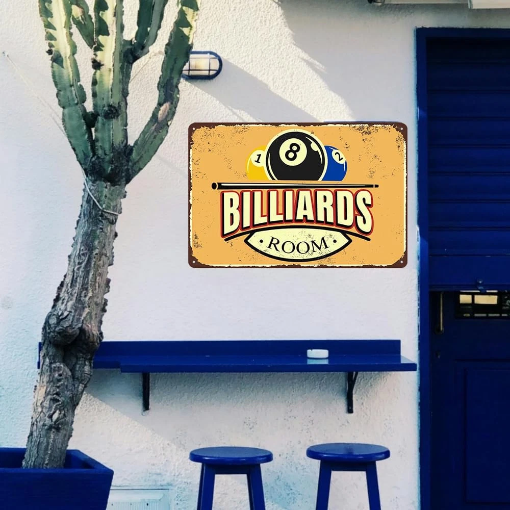 Billiards Room Decor Vintage Metal Tin Sign Size: 8x12 Inches (20x30 Cm). You Will Receive 1 Be printed Billiards Tin Sign Personalized Wall Art Signs Simple And Elegant, And A Humorous Design That Will Bring Laughter To You And Your Friends And Loved Ones! Funny Billiards Tin Sign Usage Scenarios: Vintage Metal Tin Sign Vintage Billiards Poster Suitable For You To Hang Directly On The Wall Or Door Of Your Room, For Kitchen, Dining Room, Living Room, Bedroom, Bathroom, Office, Bar, Cafe, Club, Dorm, Man Cave, Garage, Garden, Street, Hallways, Road, Garag Wall Art Decoration. To Add More Charm To Your Life. Billiards Gifts For Men: Pool Table Accessories Bedroom Sports Signs Inspirational Gifts, Artistic Decoration, Filled With Your Sincere Love, Ideal For Friends, Boys, Girls, Men, Women, Birthday, Anniversary, Christmas, Mother's Day, Father's Day, Thanksgiving, Great Gift For Halloween, Valentine's Day, Easter. Billiards Metal Sign Easy To Hang: Bedroom Sports Signs Funny Metal Tin Sign Inspirational Posters Wall Decor. Each Comes With 4 Pre-Drilled Holes So You Can Install Them Right Away. Just Nail It, Stick It With A Command Bar, Or Hang It With A String (Installation Tools Not Included). Plus, Rolled Edges And Rounded Corners Keep You Safe. These Signs Are Sure To Add Character And Style. Lifetime Satisfaction Service: We Pride Ourselves On Providing Quality Service To Our Customers And Provide Reliable After - Sales Return And Exchange Services. If You Have Any Questions, Please Do Not Hesitate To Contact Us. Billiards Room Decor Funny Billiards Tin Sign Pool Table Accessories Vintage Billiards Poster Billiards Metal Sign Billiards Gifts For Men Billiard Hall Wall Art Decoration 8x12inch