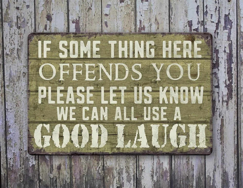 Funny Vintage Metal Tin Bar Sign for Man Cave or Garage Wall Decor in Light Blue