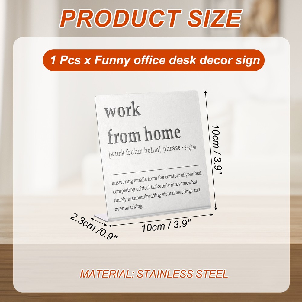 Document MULTIPURPOSE - Funny desk decoration signs use humorous sentences to inspire smile and liven up the office atmosphere, bringing personality and fun to any workspace. Perfect for birthdays, events, home, and office decorationWHAT YOU GET - 1 x Funny office desk decor sign. And their sizes are: 10cm x 2.3cm x 10cm / 3.9inch x 0.9inch x 3.9inch(L*W*H); Material: Stainless steel; Color: Silver; Style: work from homeRELIABLE MATERIAL - The funny desk decoration sign is made of stainless steel, which is strong and not easy to deform, waterproof and rust-proof, and durable. It is small in size and easy to place or move on the desk, and it does not take up too much space. The interesting title content has both decorative effects and brings fun.WIDELY USED - Funny office desk decor sign has a wide range of applications. It can be placed on the desk to decorate and bring fun to busy coworkers. It can be placed on bookshelves and wall cabinets to decorate the corners of the home. It can also be given to friends, colleague as interesting gifts.KINDLY NOTE - Please pay attention to the style and size of the title before purchasing Funny Desk Sign, Funny Nameplate, Silver (work from Home) MULTIPURPOSE - Funny desk decoration signs use humorous sentences to inspire smile and liven up the office atmosphere, bringing personality and fun to any workspace. Perfect for birthdays, events, home, and office decoration WHAT YOU GET - 1 x Funny office desk decor sign. And their sizes are: 10cm x 2.3cm x 10cm / 3.9inch x 0.9inch x 3.9inch(L*W*H); Material: Stainless steel; Color: Silver; Style: work from home RELIABLE MATERIAL - The funny desk decoration sign is made of stainless steel, which is strong and not easy to deform, waterproof and rust-proof, and durable. It is small in size and easy to place or move on the desk, and it does not take up too much space. The interesting title content has both decorative effects and brings fun. WIDELY USED - Funny office desk decor sign has a wide range of applications. It can be placed on the desk to decorate and bring fun to busy coworkers. It can be placed on bookshelves and wall cabinets to decorate the corners of the home. It can also be given to friends, colleague as interesting gifts. KINDLY NOTE - Please pay attention to the style and size of the title before purchasing Hot Item Payment 1.We accept eBay payment . 2.Payment must be received within 7 business days of auction closing. Shipping 1.We ship to your eBay or Paypal address. Please make sure your eBay and Paypal address is correct before you pay. 2.Items will be shipped within 1-3 business day when we received payment. 3.Delivery time depends on destination and other factors. Description Policy Funny Desk Sign, Funny Nameplate, Silver (work from Home) MULTIPURPOSE - Funny desk decoration signs use humorous sentences to inspire smile and liven up the office atmosphere, bringing personality and fun to any workspace. Perfect for birthdays, events, home, and office decoration WHAT YOU GET - 1 x Funny office desk decor sign. And their sizes are: 10cm x 2.3cm x 10cm / 3.9inch x 0.9inch x 3.9inch(L*W*H); Material: Stainless steel; Color: Silver; Style: work from home RELIABLE MATERIAL - The funny desk decoration sign is made of stainless steel, which is strong and not easy to deform, waterproof and rust-proof, and durable. It is small in size and easy to place or move on the desk, and it does not take up too much space. The interesting title content has both decorative effects and brings fun. WIDELY USED - Funny office desk decor sign has a wide range of applications. It can be placed on the desk to decorate and bring fun to busy coworkers. It can be placed on bookshelves and wall cabinets to decorate the corners of the home. It can also be given to friends, colleague as interesting gifts. KINDLY NOTE - Please pay attention to the style and size of the title before purchasing Hot Item Payment 1.We accept eBay payment . 2.Payment must be received within 7 business days of auction closing. Shipping 1.We ship to your eBay or Paypal address. Please make sure your eBay and Paypal address is correct before you pay. 2.Items will be shipped within 1-3 business day when we received payment. 3.Delivery time depends on destination and other factors.