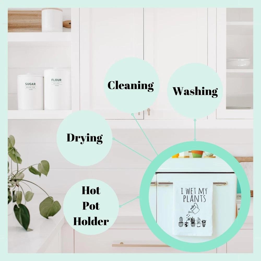 Brighten up your home with this cute and funny flour-sack dish towel! Laughing burns calories, so use these punny towels for giggle filled dish drying, as a charming hand towel for your bathroom, or as a cute gift to a friend! All of our dish towels are 100% cotton flour sack towels. They are screen printed with original designs using non-ink. Unfolded size: 28"x28". Super absorbent after a few washes. Our products are all handmade in our downtown Asheville, NC Studio/ Gift Market. These natural cotton, 100% recycled towels, may have small colored threads in some instances.