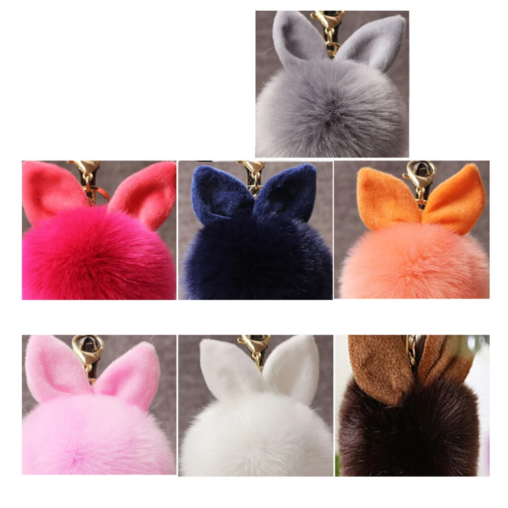 Fur Ball Keychain Rabbit Ear Keyring Bag Charm Decoration (Khaki)