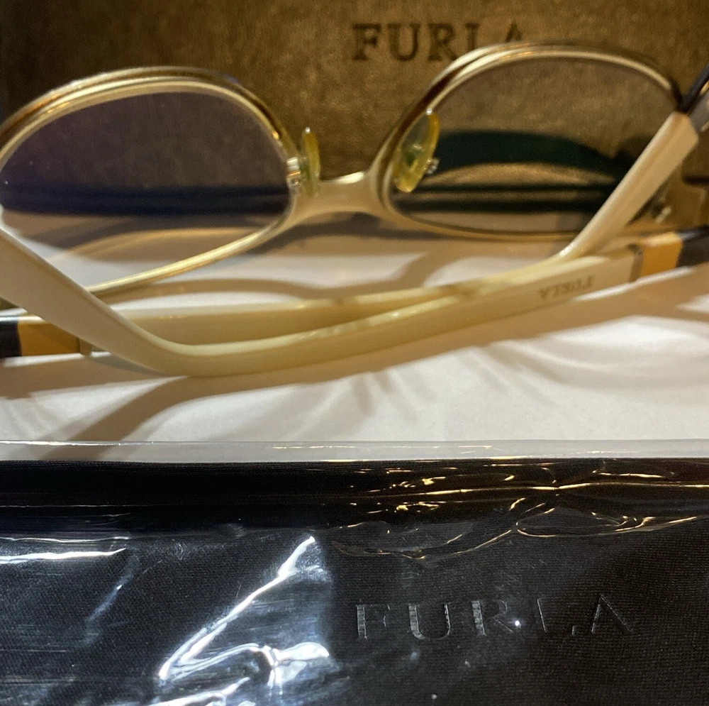 Furla Eyeglasses VFU107K 0M12 140 Brown Yellow Beige Frames Case Cleaning Cloth