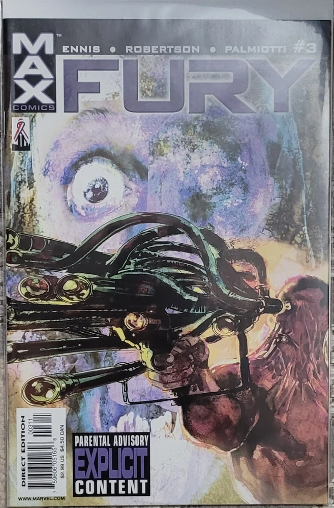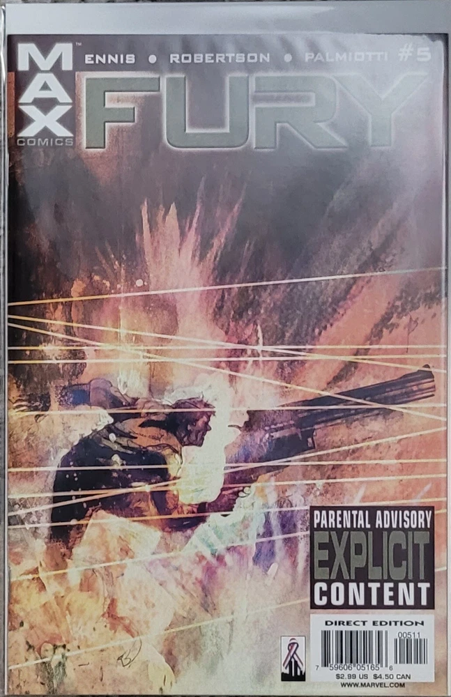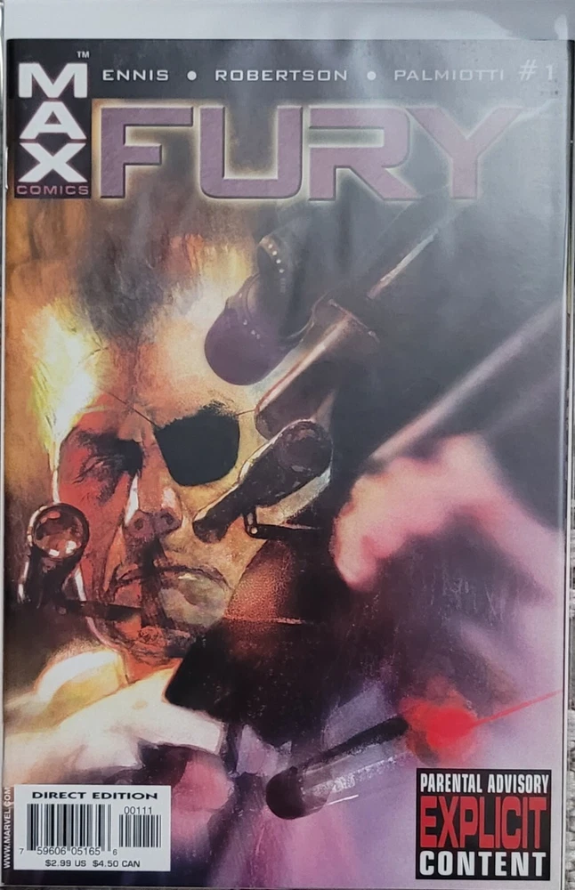 Fury #1 - 6 Cover by bill sienkiewicz garth ennis/darick robertson/jimmy palmiotti ? THE SCOOP: Want a fast-paced, irreverent, war/spy thriller laced with a strong dose of very black humor? Then saddle up, soldier! This Mature Readers adventure tells the story of an older, but no wiser, highly p.o.'d Nick Fury who's found himself on the scrap heap and wants nothing more than to go back into action. But the cold war is over, and the days when S.H.I.E.L.D. and Hydra engaged in complex games of strategy and espionage with the fate of the world at stake are gone. Or are they? ? THE STORY: After a brisk firefight in the Mexican desert, Fury discovers both ex-S.H.I.E.L.D. and ex-Hydra personnel among the enemy dead ? further evidence that the glory days when good was good and evil was evil are behind him and fading fast. But a ray of light on the horizon comes from an unexpected source: an old enemy of Nick's is in town, an ex-Hydra soldier who almost killed our grizzled hero ? and vice versa ? more than a dozen times. And Rudy's got an offer for his old adversary... boy, does he! ? THE CREATORS: You want intense? How's this lineup: Garth Ennis (PUNISHER, Preacher) on words, Darick Robertson (Transmetropolitan) on pencils, and Jimmy Palmiotti (PUNISHER) on inks! We even got Bill Sienkiewicz (ELEKTRA ASSASSIN) to supply covers! Now that's hard core! ? THE FORMAT: Each issue of this monthly, six-issue series will be 32 pages, with ads. ? THE WARNING: Contains explicit content. Recommended for Mature Readers. DISCOUNT FOR RETURNING CUSTOMERS Please ask for 10% off selling price if you have bought from me in the past. Thank you. Terms of Sale I am not a professional grader. All comics range from F to NM. All comics are first printings and are bagged with backing boards. Multiple comics are kept 2 comics to a board in comic bag. Total 6 books. Please see the auction photos for the items' condition. You can always send me a private message to ask for more photos. Please inquire if the auction photo does not match the item description. Please note that NO RETURNS are offered and all sales are final. Payment for the auction is due within 3 days after the end of auction. Thank you for visiting. Please check out my other auctions as well. Shipping Method All items will be shipped via USPS with tracking information. NO INTERNATIONAL BIDS .