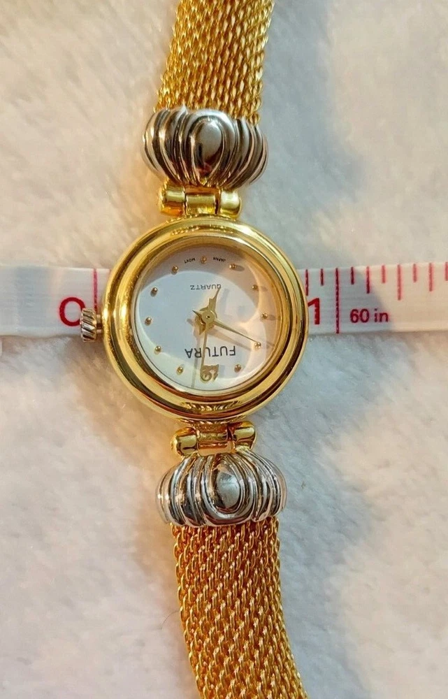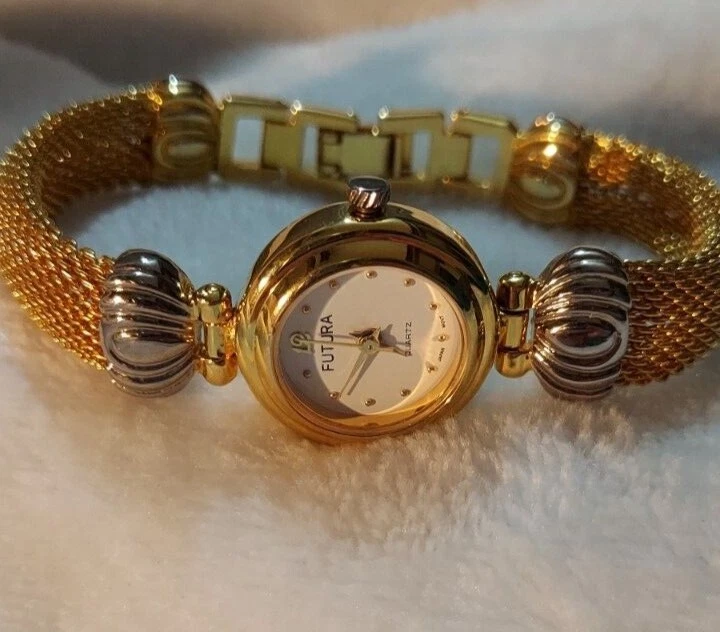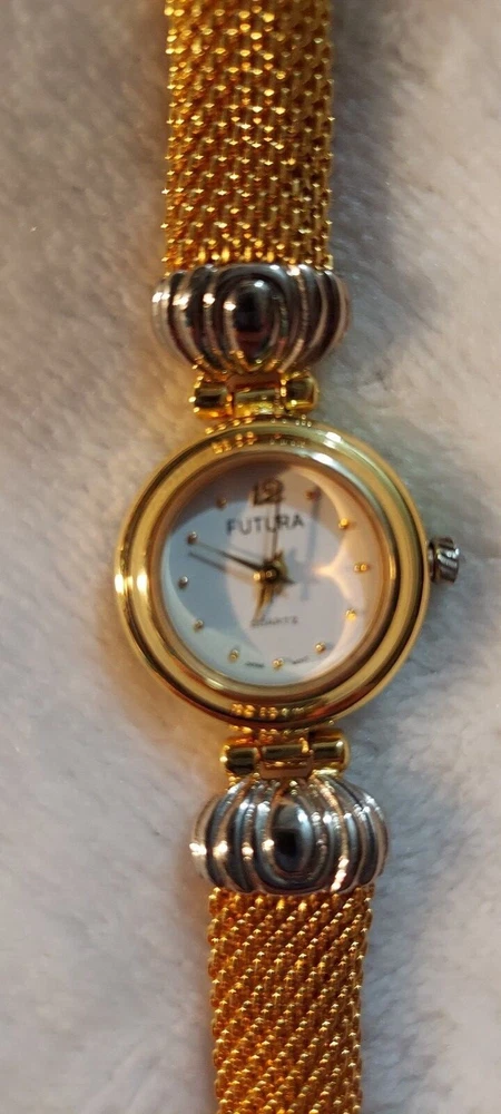 Futura Women's Watch Stainless Gold Silver Quartz Japan Movement Needs Battery. This is a nice watch, has a snake like smooth band. Has been stored away and never worn. 7 inches long. See all photos. If you purchase multiple items shipping can be combined.