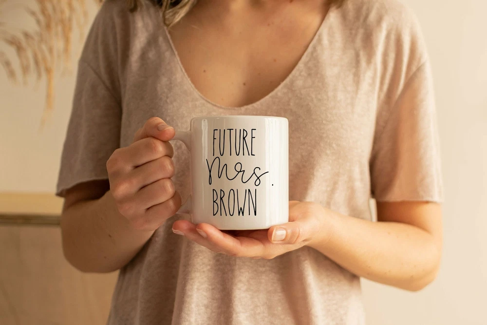 Future Mrs Mug Personalized Future Mrs Mug Gift Camping Mug Engagement Gift Mug Product Details.. This high quality 11oz. ceramic white mug has a premium hard coat that provides crisp and vibrant color reproduction sure to last for years. Perfect for all hot & cold beverages. The highest quality printing possible is used. It will never fade no matter how many times you wash it. Material: 100% Ceramic. Print both sides. Dishwasher and Microwave Safe. High Gloss + Premium White Finish. Printed in the U.S.A. Personalized & Custom. We support personalized and custom mug to add custom, when placing an order, you can add notes to the "order note" in shipping address section. Also you can contact us directly via message. Shipping Info. Ready to ship in 1 to 2 business days, All products are made-to-order and proudly printed in the United States. Shipped by USPS and DHL, You will receive your order in 5-7 days. Replace & Refund. All products are defective during shipping broken, chipped will be replaced free of charge. You are not satisfied with the product, we will refund 100% money to you. If any other issues arise, please do not hesitate to message, we would be more than happy to assist you.