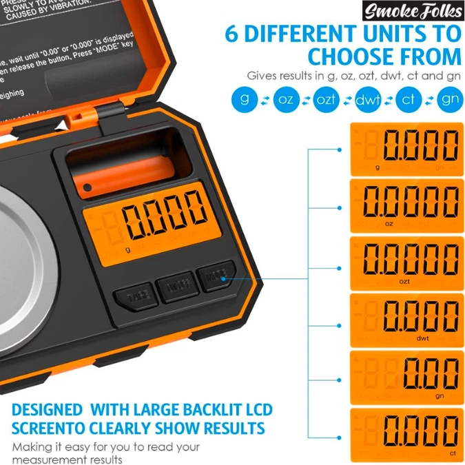 FUZION UF20H X 0.001G PROFESSIONAL DIGITAL MINI SCALE The Fuzion UF20H x 0.001g Professional Digital Mini Scale provides high precision with a 0.001g readability and 20g capacity , making it perfect for weighing small items such as jewelry , gems , and herbs . This mini scale features 6 weighing modes , a stainless steel platform , and a clear LCD display with 4.5 digits for easy reading. It also includes a tare function , auto-off feature , and free calibration weight to ensure convenience and accuracy. KEY FEATURES : Feature Details Capacity 20g Readability 0.001g Weighing Units g, oz, gm, ct, ozt, dwt Tare Range Tare Full Capacity Auto-Off Yes, after inactivity Power 2 x AAA batteries (included) Display LCD with 4.5 digits Platform Stainless steel, 2.36 inches Overload/Underload Indication Yes Free Calibration Weight Yes With its compact size , lightweight design , and precise measurements , the Fuzion UF20H is an excellent choice for professionals who need a portable, reliable digital scale with advanced features for accurate weighing.