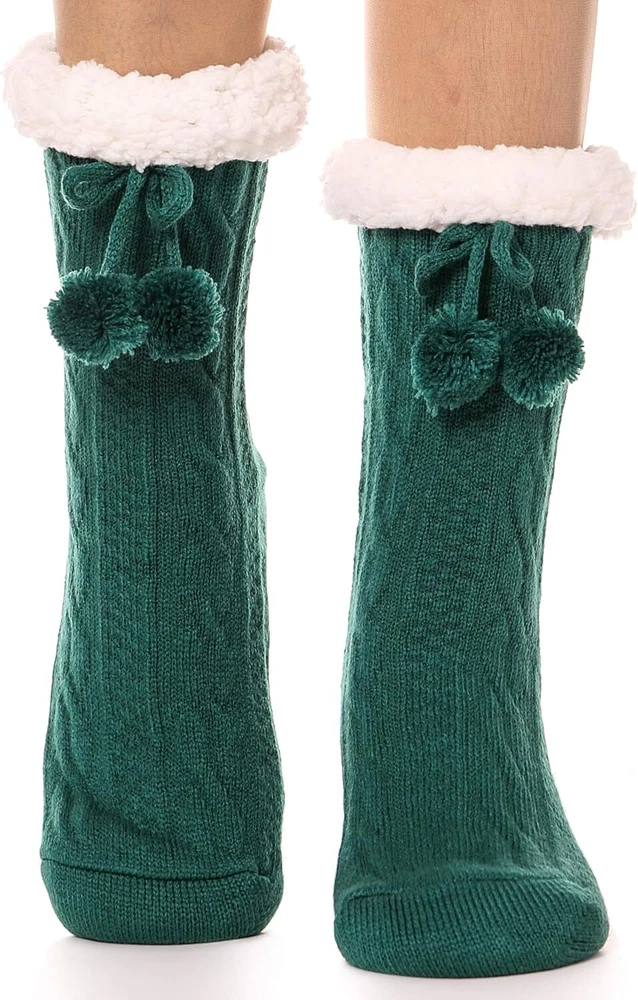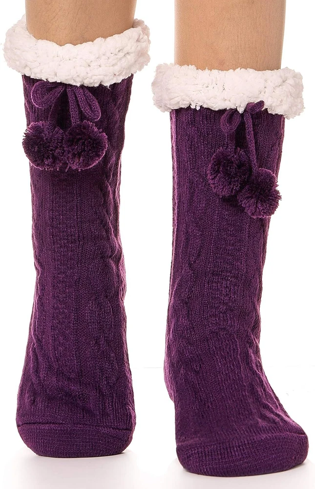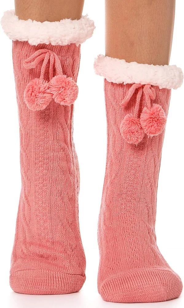 Fuzzy Slipper Socks - Warm Cozy Winter Socks with Grips for Women