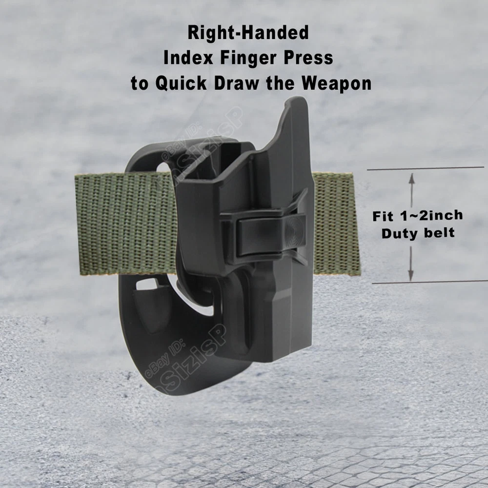 High Quality Military & Police Grade Polymer OWB Holster Specially Designed For Fast Draw During Duty Or Shooting Competition. Outside the Waistband Tactical Holster with paddle method Holster fit Taurus Taurus G2c 3.2" 9mm Luger Taurus G2s 3.25" 9mm Luger Taurus PT111 Millennium G2 3.2" 9mm Luge r (Not PRO ) Holster fit Taurus G2c 3.2" .40 S&W Taurus G2s 3.25" .40 S&W Taurus PT140 Millennium G2 3.2" .40 S&W (Not PRO ) Holster for Taurus PT132 Millenn ium 3.25" .32 ACP (Not PRO ) Taurus PT138 Millenn ium 3.25" .380 ACP (Not PRO ) Holster for Taurus PT145 Millennium G2 3.3" .45 ACP (Not PRO ) Taurus PT745 Millennium 3.25" .45 ACP (Not PRO ) ( Notice: These models do not fit Taurus PT24/7 G2 .40 S&W.) (It perfect fit the gun with Optic Mount Mini Sight above on the end of the barrel, But without laser and no embedded chassis, and no flashlight style ) Materials & Durable Made of durable high-tech polymer materials - Stronger than leather will wear out, the polymer holster will not wear out and get flimsy. High S afety I ndex-finger release for quick release button (Level II retention) An audible click lock system ensures knowing when your weapon is securely holstered A djustable E asily set your paddle /belt cant 0-60 degrees according to your preference with the Allen key Ease And Comfort Easy on / Easy off- No need to undo your belt every time you wear your holster.Sweat-proof- Protect your weapon from salty perspiration and not absorb sweat.Adapt to every environment In the Package: · 1*Holster with Paddle · 1*Allen Key Shipping: Ships same day or next except Sundays and Holidays ! Free shipping! Ship by USPS First Class Package. 100% MONEY BACK GUARANTEE. Any question please be free to contact with us .Thanks!